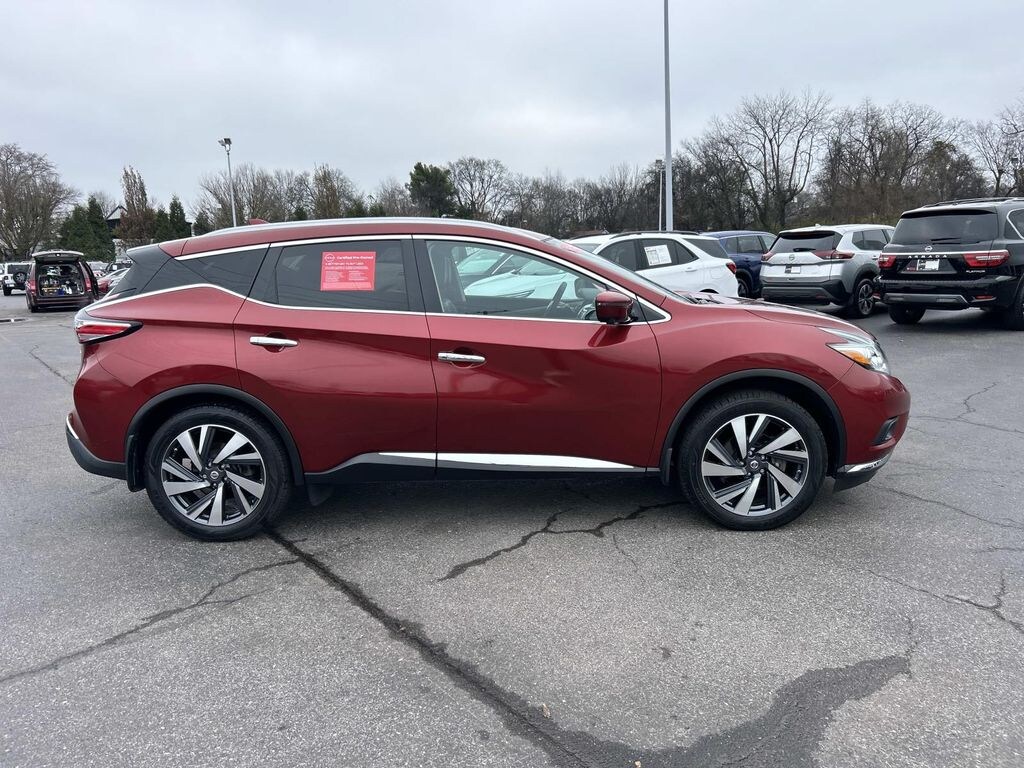 Certified Select Certified, CVT with Xtronic, 11 Speakers, 4-Wheel Disc Brakes, 4.667 Axle Ratio, ABS brakes, Accessory Illuminated Kick Plates, Air Conditioning, Alloy wheels, AM/FM radio: SiriusXM, AM/FM/CD/MP3/WMA Audio System, Apple CarPlay/Android Auto, Auto tilt-away steering wheel, Auto-dimming Rear-View mirror, Automatic temperature control, Blind Spot Warning, Brake assist, Bumpers: body-color, Carpeted Floor Mats & Carpeted Cargo Mat, CD player, Child-Seat-Sensing Airbag, Climate-Controlled Front Bucket Seats, Compass, Delay-off headlights, Driver door bin, Driver vanity mirror, Dual front impact airbags, Dual front side impact airbags, Electronic Stability Control, Emergency communication system: NissanConnect Services, Exterior Accent Lighting, Four wheel independent suspension, Front anti-roll bar, Front Bucket Seats, Front Center Armrest, Front dual zone A/C, Front fog lights, Front reading lights, Fully automatic headlights, Garage door transmitter: HomeLink, Heated door mirrors, Heated front seats, Heated rear seats, Heated steering wheel, Illuminated entry, Knee airbag, Leather Appointed Seat Trim, Low tire pressure warning, Memory seat, Navigation System, NissanConnect Services Powered By SiriusXM, Occupant sensing airbag, Outside temperature display, Overhead airbag, Overhead console, Panic alarm, Passenger door bin, Passenger vanity mirror, Power door mirrors, Power driver seat, Power Liftgate, Power moonroof, Power passenger seat, Power steering, Power windows, Radio data system, Rear anti-roll bar, Rear reading lights, Rear seat center armrest, Rear window defroster, Rear window wiper, Remote keyless entry, Roof rack: rails only, Security system, Speed control, Speed-sensing steering, Speed-Sensitive Wipers, Splash Guards, Split folding rear seat, Spoiler, Steering wheel memory, Steering wheel mounted audio controls, Tachometer, Telescoping steering wheel, Tilt steering wheel, Traction control, Trip computer, Turn signal indicator mirrors, Variably intermittent wipers, Ventilated front seats, Wheels: 20" Machined Aluminum-Alloy, CVT with Xtronic.