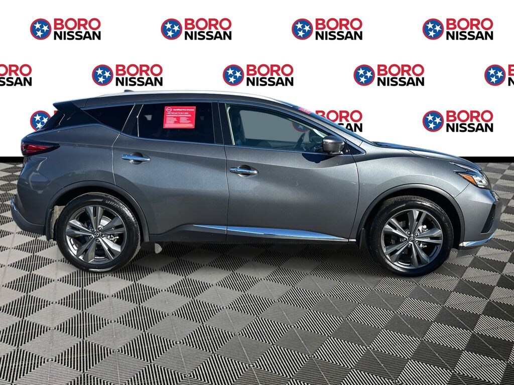 Certified Select Certified, CVT with Xtronic, AWD, 11 Speakers, 4-Wheel Disc Brakes, 4.667 Axle Ratio, ABS brakes, Accessory Illuminated Kick Plates, Air Conditioning, Alloy wheels, AM/FM radio: SiriusXM, AM/FM/CD/MP3/WMA Audio System, Auto High-beam Headlights, Auto tilt-away steering wheel, Auto-dimming Rear-View mirror, Automatic temperature control, Blind Spot Warning, Brake assist, Bumpers: body-color, Cargo Area Protector, Cargo Net, Cargo Package, Carpeted Floor Mats & Carpeted Cargo Mat, CD player, Child-Seat-Sensing Airbag, Climate-Controlled Front Bucket Seats, Compass, Delay-off headlights, Driver door bin, Driver vanity mirror, Dual front impact airbags, Dual front side impact airbags, Electronic Stability Control, Emergency communication system: NissanConnect Services, First Aid Kit, Four wheel independent suspension, Front anti-roll bar, Front Bucket Seats, Front Center Armrest, Front dual zone A/C, Front fog lights, Front reading lights, Fully automatic headlights, Garage door transmitter: HomeLink, Heated door mirrors, Heated front seats, Heated rear seats, Heated steering wheel, Illuminated entry, Illuminated Kick Plate, Knee airbag, Low tire pressure warning, Memory seat, Navigation system: NissanConnect Navigation, NissanConnect featuring Apple CarPlay and Android Auto, NissanConnect Services Powered By SiriusXM, Occupant sensing airbag, Outside temperature display, Overhead airbag, Overhead console, Panic alarm, Passenger door bin, Passenger vanity mirror, Power door mirrors, Power driver seat, Power Liftgate, Power moonroof, Power passenger seat, Power steering, Power windows, Radio data system, Rear anti-roll bar, Rear Bumper Protector, Rear reading lights, Rear seat center armrest, Rear side impact airbag, Rear window defroster, Rear window wiper, Remote keyless entry, Retractable Cargo Cover, Roof rack: rails only, Security system, Semi-Aniline Leather-Appointed Seat Trim, Speed control, Speed-sensing steering, Speed-Sensitive Wipers, Splash Guards, Split folding rear seat, Spoiler, Steering wheel memory, Steering wheel mounted audio controls, Tachometer, Telescoping steering wheel, Tilt steering wheel, Traction control, Trip computer, Turn signal indicator mirrors, Variably intermittent wipers, Ventilated front seats, Wheels: 20" Dark Hyper Silver, CVT with Xtronic, AWD.