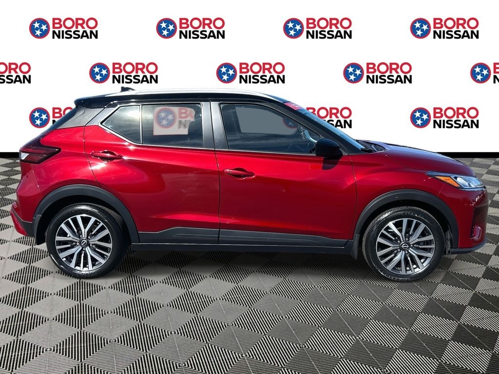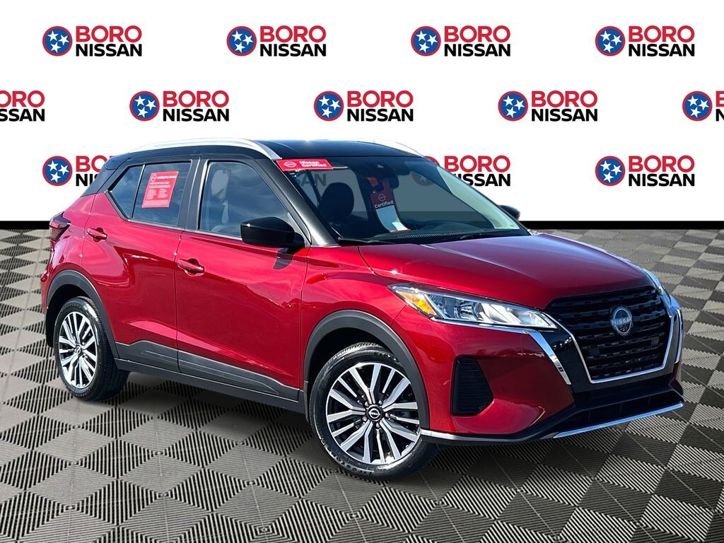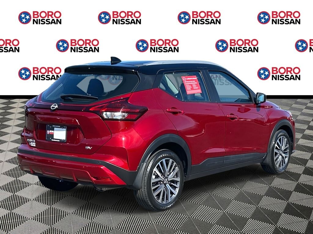 Certified. Scarlet Ember Tintcoat/Super Black 2023 Nissan Kicks SV FWD 1.6L 4-Cylinder DOHC 16V CVT with Xtronic