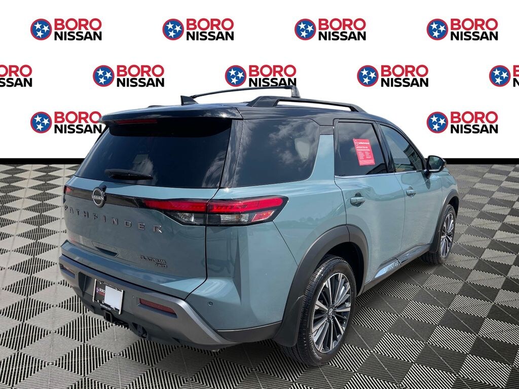 Certified. Baltic Teal/Super Black 2026 Nissan Pathfinder Platinum 4WD 3.5L V6 DOHC 9-Speed Automatic