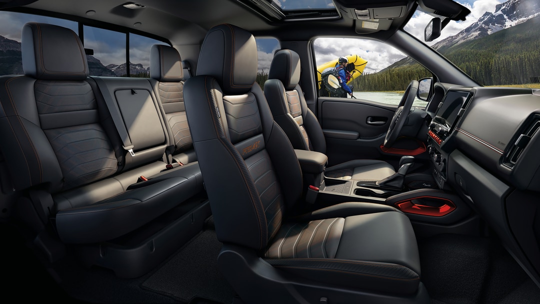 The all-new Nissan Frontier offers a spacious, refined interior designed to keep you and your crew comfortable on long hauls or weekend getaways. Stylish, durable cloth or premium leather upholstery is available, along with heated front seats to ward off chilly morning temperatures. Dual Zone Automatic Temperature Control ensures personalized comfort for you and your front passenger. And with the crew cab's rear seat folded, you'll have ample room to load up larger cargo.
