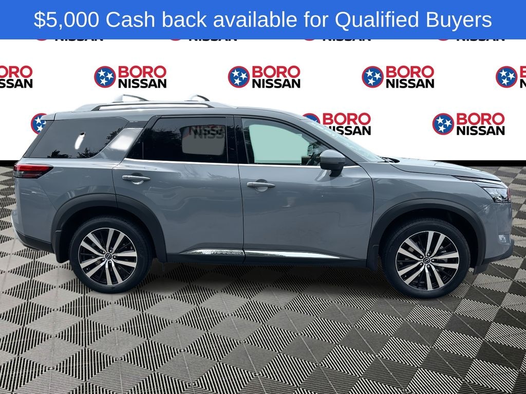 Boulder Gray Pearl 2025 Nissan Pathfinder Platinum FWD 9-Speed Automatic 3.5L V6 DOHC 13 Speakers, 3rd row seats: bench, 4-Wheel Disc Brakes, ABS brakes, Air Conditioning, Alloy wheels, AM/FM radio: SiriusXM, Auto High-beam Headlights, Auto tilt-away steering wheel, Auto-dimming Rear-View mirror, Automatic temperature control, Bench Seat Carpeted Floor Mats (Set of 4), Black Splash Guards (Set of 4), Bodyside moldings, Bose Premium Audio System, Brake assist, Bumpers: body-color, Cargo Area Protector, Cargo Net, Cargo Package, Climate Controlled Front Bucket Seats, Cross Bars, Delay-off headlights, Driver door bin, Driver vanity mirror, Dual front impact airbags, Dual front side impact airbags, Electronic Stability Control, Emergency communication system, Exterior Parking Camera Rear, First Aid, Four wheel independent suspension, Front anti-roll bar, Front Bucket Seats, Front Center Armrest, Front dual zone A/C, Front reading lights, Fully automatic headlights, Garage door transmitter: HomeLink, Heads-Up Display, Heated door mirrors, Heated front seats, Heated rear seats, Heated steering wheel, Illuminated entry, Knee airbag, Leather steering wheel, Low tire pressure warning, Memory seat, Navigation system: NissanConnect with Navigation and Services, Nissan USB Charging Cable Set, NissanConnect featuring Apple CarPlay and Android Auto, NissanConnect w/Navigation & Services, Occupant sensing airbag, Outside temperature display, Overhead airbag, Overhead console, Panic alarm, Passenger door bin, Passenger vanity mirror, Power door mirrors, Power driver seat, Power Liftgate, Power moonroof, Power passenger seat, Power steering, Power windows, Premium Paint, Radio data system, Radio: AM/FM Audio System, Rain sensing wipers, Rear air conditioning, Rear anti-roll bar, Rear reading lights, Rear seat center armrest, Rear side impact airbag, Rear window defroster, Rear window wiper, Reclining 3rd row seat, Remote keyless entry, Security system, Semi-Aniline Leather-Appointed Seating Surfaces, Speed control, Speed-sensing steering, Speed-Sensitive Wipers, Split folding rear seat, Spoiler, Steering wheel memory, Steering wheel mounted audio controls, Tachometer, Telescoping steering wheel, Tilt steering wheel, Traction control, Trip computer, Turn signal indicator mirrors, Variably intermittent wipers, Ventilated front seats, Wheels: 20" x 8J Machined Alloy, SUNROOF, THIRD ROW, LEATHER, NAVIGATION, ALLOY WHEELS.