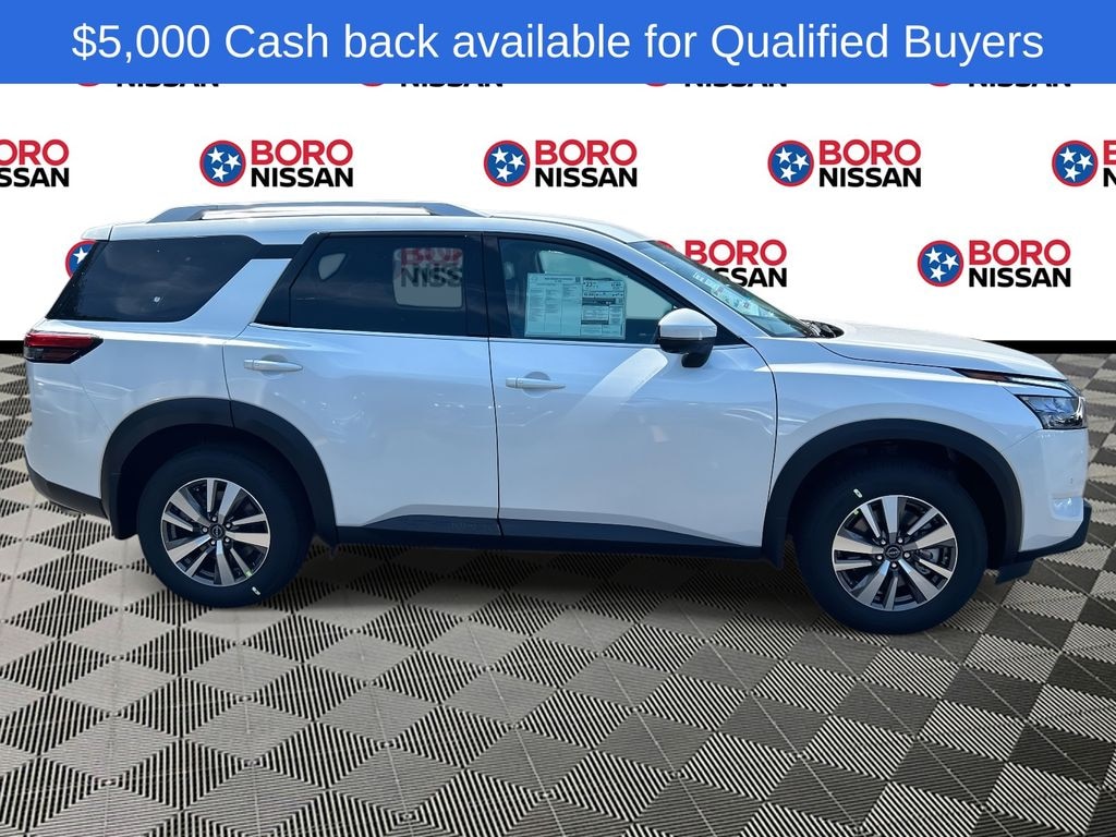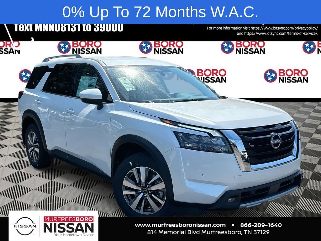 Everest White Pearl Tricoat 2025 Nissan Pathfinder SL FWD 9-Speed Automatic 3.5L V6 DOHC 3rd row seats: bench, 4-Wheel Disc Brakes, 6 Speakers, ABS brakes, Air Conditioning, Alloy wheels, AM/FM radio: SiriusXM, Auto High-beam Headlights, Auto-dimming Rear-View mirror, Automatic temperature control, Bench Seat Carpeted Floor Mats (Set of 4), Bose Premium Audio System, Brake assist, Bumpers: body-color, Cargo Area Protector, Cargo Net, Cargo Package, Delay-off headlights, Driver door bin, Driver vanity mirror, Dual front impact airbags, Dual front side impact airbags, Electronic Stability Control, Emergency communication system, Exterior Parking Camera Rear, First Aid, Four wheel independent suspension, Front anti-roll bar, Front Bucket Seats, Front Center Armrest, Front dual zone A/C, Front reading lights, Fully automatic headlights, Garage door transmitter: HomeLink, Heated door mirrors, Heated Front Bucket Seats, Heated front seats, Heated steering wheel, Illuminated entry, Illuminated Kick Plate, Knee airbag, Leather steering wheel, Leather-Appointed Seating Surfaces, LED Fog Lamps, Lighting Package (N92), Low tire pressure warning, Navigation system: NissanConnect with Navigation and Services, NissanConnect featuring Apple CarPlay and Android Auto, NissanConnect w/Navigation & Services, Occupant sensing airbag, Outside temperature display, Overhead airbag, Overhead console, Panic alarm, Passenger door bin, Passenger vanity mirror, Power door mirrors, Power driver seat, Power Liftgate, Power passenger seat, Power steering, Power windows, Premium Paint, Radio data system, Radio: AM/FM Audio System, Rear air conditioning, Rear anti-roll bar, Rear reading lights, Rear seat center armrest, Rear side impact airbag, Rear window defroster, Rear window wiper, Reclining 3rd row seat, Remote keyless entry, Security system, Speed control, Speed-sensing steering, Split folding rear seat, Spoiler, Steering wheel mounted audio controls, Tachometer, Telescoping steering wheel, Tilt steering wheel, Traction control, Trip computer, Turn signal indicator mirrors, Variably intermittent wipers, Welcome Lighting, Wheels: 18" x 8J Machined Alloy, THIRD ROW, LEATHER, NAVIGATION, ALLOY WHEELS.