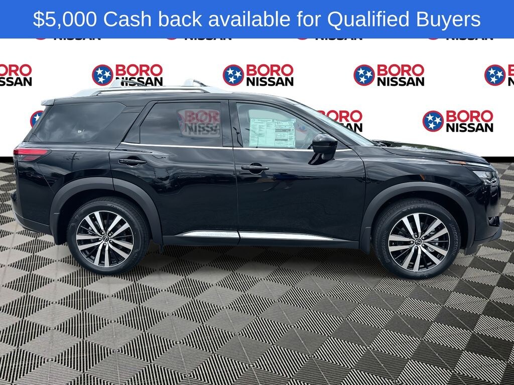 Super Black 2025 Nissan Pathfinder Platinum FWD 9-Speed Automatic 3.5L V6 DOHC 13 Speakers, 3rd row seats: bench, 4-Wheel Disc Brakes, ABS brakes, Air Conditioning, Alloy wheels, AM/FM radio: SiriusXM, Auto High-beam Headlights, Auto tilt-away steering wheel, Auto-dimming Rear-View mirror, Automatic temperature control, Bench Seat Carpeted Floor Mats (Set of 4), Black Splash Guards (Set of 4), Bodyside moldings, Bose Premium Audio System, Brake assist, Bumpers: body-color, Cargo Area Protector, Cargo Net, Cargo Package, Climate Controlled Front Bucket Seats, Cross Bars, Delay-off headlights, Driver door bin, Driver vanity mirror, Dual front impact airbags, Dual front side impact airbags, Electronic Stability Control, Emergency communication system, Exterior Parking Camera Rear, First Aid, Four wheel independent suspension, Front anti-roll bar, Front Bucket Seats, Front Center Armrest, Front dual zone A/C, Front reading lights, Fully automatic headlights, Garage door transmitter: HomeLink, Heads-Up Display, Heated door mirrors, Heated front seats, Heated rear seats, Heated steering wheel, Illuminated entry, Knee airbag, Leather steering wheel, Low tire pressure warning, Memory seat, Navigation system: NissanConnect with Navigation and Services, NissanConnect featuring Apple CarPlay and Android Auto, NissanConnect w/Navigation & Services, Occupant sensing airbag, Outside temperature display, Overhead airbag, Overhead console, Panic alarm, Passenger door bin, Passenger vanity mirror, Power door mirrors, Power driver seat, Power Liftgate, Power moonroof, Power passenger seat, Power steering, Power windows, Radio data system, Radio: AM/FM Audio System, Rain sensing wipers, Rear air conditioning, Rear anti-roll bar, Rear reading lights, Rear seat center armrest, Rear side impact airbag, Rear window defroster, Rear window wiper, Reclining 3rd row seat, Remote keyless entry, Security system, Semi-Aniline Leather-Appointed Seating Surfaces, Speed control, Speed-sensing steering, Speed-Sensitive Wipers, Split folding rear seat, Spoiler, Steering wheel memory, Steering wheel mounted audio controls, Tachometer, Telescoping steering wheel, Tilt steering wheel, Traction control, Trip computer, Turn signal indicator mirrors, Variably intermittent wipers, Ventilated front seats, Wheels: 20" x 8J Machined Alloy.