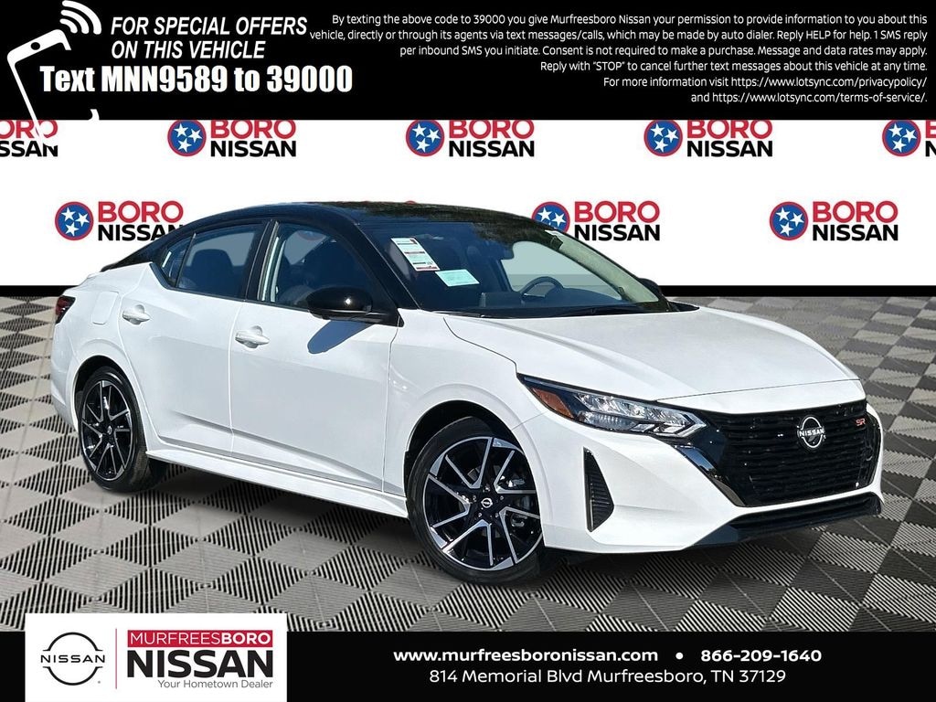 Aspen White Tricoat/Super Black 2025 Nissan Sentra SR FWD CVT with Xtronic 2.0L I4 DOHC APPLE ANDRIOD CAR PLAY, REAR BACKUP CAMERA, BLUETOOTH, CVT with Xtronic, Sport Cloth, 18" Alloy Wheels, 2-Tone Premium Paint, 4-Wheel Disc Brakes, 6-Way Power Driver's Seat, 8 Speakers, ABS brakes, Air Conditioning, Alloy wheels, AM/FM radio: SiriusXM, Auto High-beam Headlights, Automatic temperature control, Blind Spot Warning, Bose Premium Audio System w/8 Speakers, Brake assist, Bumpers: body-color, Carpeted Floor Mats w/Trunk Mat, Clear Rear Bumper Protector, Delay-off headlights, Door Sill Plates, Driver door bin, Driver vanity mirror, Dual front impact airbags, Dual front side impact airbags, Electronic Stability Control, Four wheel independent suspension, Front anti-roll bar, Front Bucket Seats, Front Center Armrest, Front dual zone A/C, Front reading lights, Fully automatic headlights, Heated door mirrors, Heated Front Bucket Seats, Heated front seats, Illuminated entry, Intelligent Around View Monitor (I-AVM), Knee airbag, Leather Heated Steering Wheel, Leather Shift Knob, Leatherette Seat Trim, Low tire pressure warning, NissanConnect featuring Apple CarPlay and Android Auto, NissanConnect Services, Occupant sensing airbag, Outside temperature display, Overhead airbag, Overhead console, Panic alarm, Passenger door bin, Passenger vanity mirror, Power door mirrors, Power Sliding Glass Moonroof w/Tilt Feature, Power steering, Power windows, Radio data system, Radio: AM/FM w/RDS/MP3/Aux-In, Rear anti-roll bar, Rear Parking Sensors, Rear seat center armrest, Rear side impact airbag, Rear window defroster, Remote keyless entry, Security system, Speed control, Speed-sensing steering, Split folding rear seat, Spoiler, Sport Cloth Seat Trim, SR Premium Package, Steering wheel mounted audio controls, Sunvisors w/Illuminated Vanity Mirrors, Tachometer, Telescoping steering wheel, Tilt steering wheel, Traction control, Trip computer, Turn signal indicator mirrors, Variably intermittent wipers, Wi-Fi Hotspot, SUNROOF, LEATHER, NAVIGATION, ALLOY WHEELS, CVT with Xtronic, Sport Cloth.