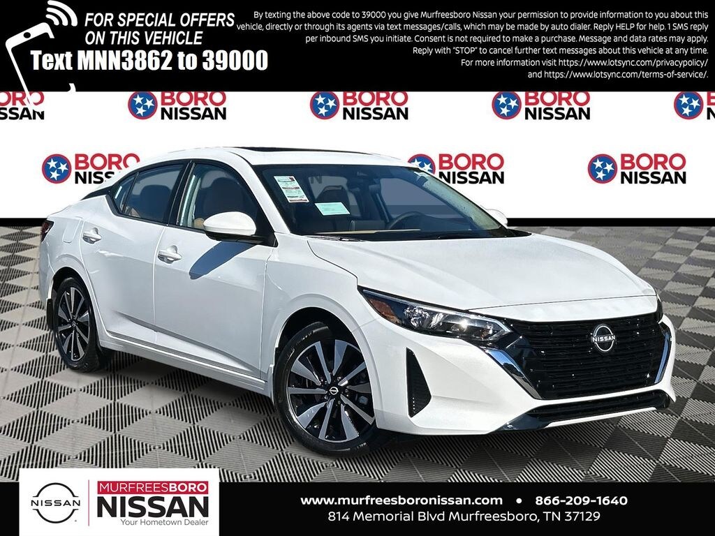 Aspen White Tricoat 2025 Nissan Sentra SV FWD CVT with Xtronic 2.0L I4 DOHC APPLE ANDRIOD CAR PLAY, REAR BACKUP CAMERA, BLUETOOTH, CVT with Xtronic, Sv Premium Leather, 16" Alloy Wheels, 17" Alloy Wheels, 4-Wheel Disc Brakes, 6-Way Power Driver's Seat, 8 Speakers, ABS brakes, Air Conditioning, All-Weather Package, Alloy wheels, AM/FM radio: SiriusXM, Auto High-beam Headlights, Blind Spot Warning, Body Colored Splash Guards (4-Piece), Bose Premium Audio System w/8 Speakers, Brake assist, Bumpers: body-color, Carpeted Floor Mats w/Trunk Mat, Clear Rear Bumper Protector, Delay-off headlights, Door Sill Plates, Driver door bin, Driver vanity mirror, Dual front impact airbags, Dual front side impact airbags, Dual Zone Auto Climate Control, Electronic Stability Control, Four wheel independent suspension, Front anti-roll bar, Front Bucket Seats, Front Center Armrest, Front reading lights, Fully automatic headlights, Heated Exterior Mirrors, Heated Front Seats, Hide-A-Way Trunk Net, Illuminated entry, Intelligent Around View Monitor (I-AVM), Knee airbag, Leather Shift Knob, Leather-Wrapped Heated Steering Wheel, Low tire pressure warning, Nissan Connect Services, NissanConnect featuring Apple CarPlay and Android Auto, NissanConnect Services, Occupant sensing airbag, Outside temperature display, Overhead airbag, Overhead console, Panic alarm, Passenger door bin, Passenger vanity mirror, Power door mirrors, Power Sliding Glass Moonroof w/Tilt Feature, Power steering, Power windows, Premium Paint, Quilted Leather Seat Trim, Radio data system, Radio: AM/FM w/RDS/MP3/Aux-In, Rear anti-roll bar, Rear Armrest w/2 Cupholders, Rear Parking Sensors, Rear side impact airbag, Rear window defroster, Remote Engine Start, Remote keyless entry, Security system, Speed control, Speed-sensing steering, Split folding rear seat, Steering wheel mounted audio controls, SV Premium Package, Tachometer, Telescoping steering wheel, Tilt steering wheel, Traction control, Trip computer, Trunk Package, Turn Signal Indicators On Exterior Mirrors, Upgraded Cloth Seat Trim, Variably intermittent wipers, Wi-Fi Hotspot, SUNROOF, LEATHER, NAVIGATION, ALLOY WHEELS, CVT with Xtronic, Sv Premium Leather.