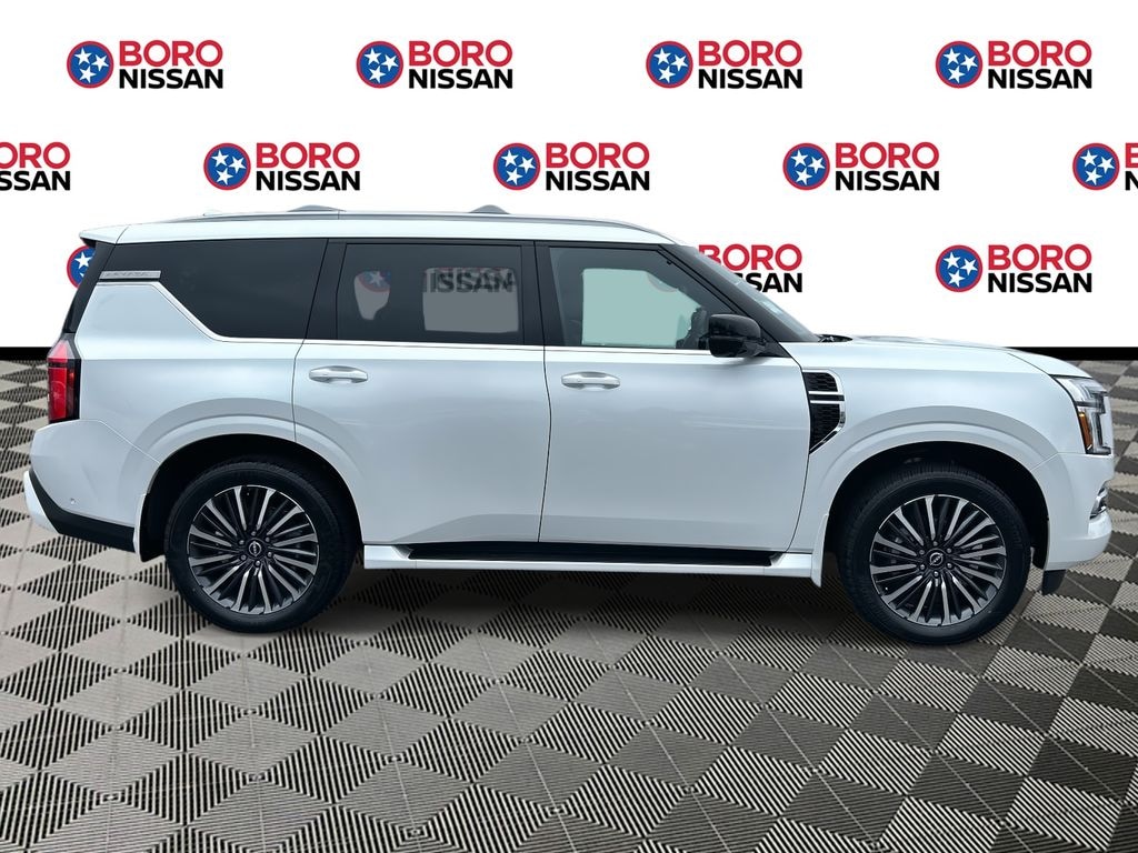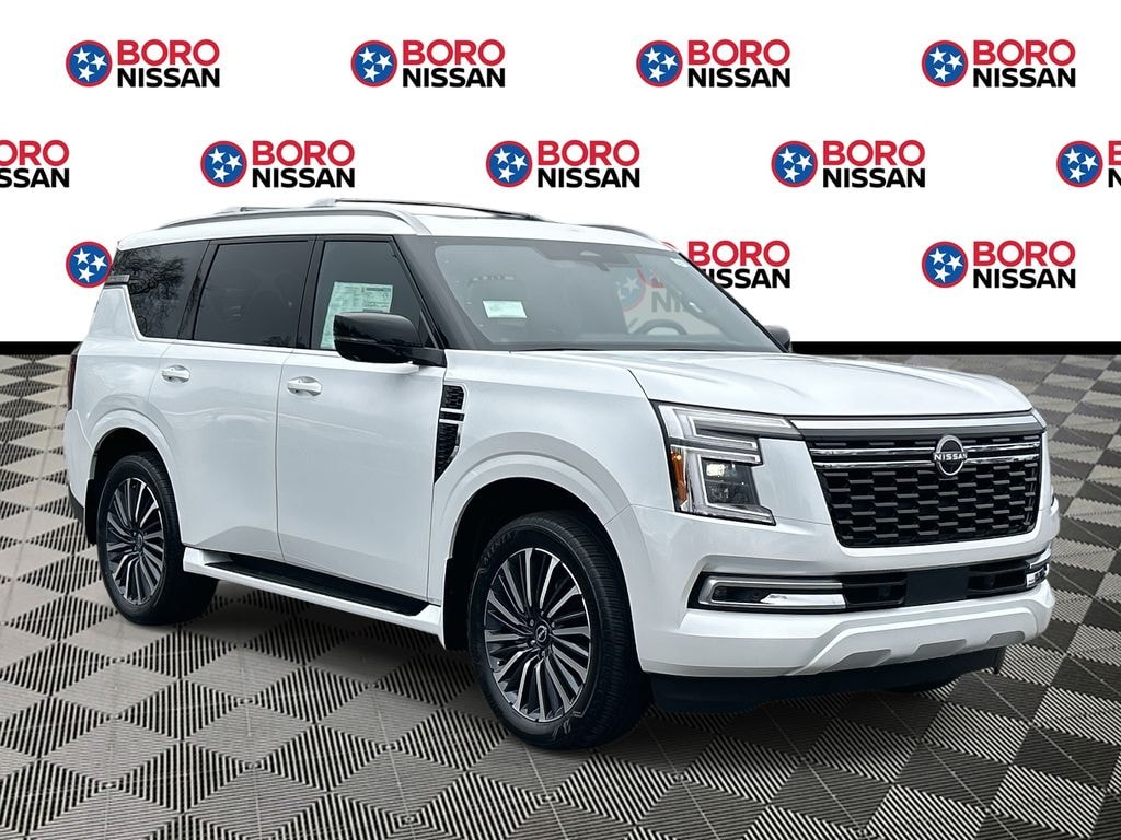 Everest White Pearl Tricoat 2026 Nissan Armada Platinum Reserve 4WD 9-Speed Automatic 3.5L DOHC CAPTAINS CHAIRS, APPLE ANDRIOD CAR PLAY, REAR BACKUP CAMERA, BLUETOOTH, 4WD, 12 Speakers, 3rd row seats: split-bench, 4-Wheel Disc Brakes, ABS brakes, Adaptive suspension, Air Conditioning, Alloy wheels, AM/FM radio: SiriusXM w/360L, Anti-whiplash front head restraints, Apple CarPlay/Android Auto, Auto High-beam Headlights, Auto tilt-away steering wheel, Auto-dimming door mirrors, Auto-dimming Rear-View mirror, Auto-leveling suspension, Automatic temperature control, Brake assist, Bumpers: body-color, Carpeted Floor Mats with Captain Chairs, Climate Controlled Heated and Ventilated Front Seats, Compass, Cross Bars, Delay-off headlights, Driver door bin, Driver vanity mirror, Dual front impact airbags, Dual front side impact airbags, Electronic Stability Control, Emergency communication system: NissanConnect Services, Four wheel independent suspension, Front anti-roll bar, Front Bucket Seats, Front Center Armrest, Front dual zone A/C, Front fog lights, Front reading lights, Fully automatic headlights, Garage door transmitter: HomeLink, Genuine wood dashboard insert, Heads-Up Display, Heated door mirrors, Heated front seats, Heated rear seats, Heated steering wheel, HVAC memory, Illuminated entry, Illuminated Kick Plates, Knee airbag, Leather steering wheel, Low tire pressure warning, Memory seat, Navigation system: Google Maps, Occupant sensing airbag, Outside temperature display, Overhead airbag, Overhead console, Panic alarm, Passenger door bin, Passenger vanity mirror, Power door mirrors, Power driver seat, Power Liftgate, Power moonroof, Power passenger seat, Power steering, Power windows, ProPILOT Assist 2.1, Quilted Leather Seat Trim, Radio: NissanConnect with SiriusXM 360L, Rain sensing wipers, Rear air conditioning, Rear anti-roll bar, Rear Bumper Protector, Rear reading lights, Rear window defroster, Rear window wiper, Reclining 3rd row seat, Remote keyless entry, Security system, Speed control, Speed-sensing steering, Speed-Sensitive Wipers, Splash Guards, Split folding rear seat, Spoiler, Steering wheel memory, Steering wheel mounted audio controls, Super Premium Paint, Tachometer, Telescoping steering wheel, Tilt steering wheel, Traction control, Trip computer, Turn signal indicator mirrors, Variably intermittent wipers, Ventilated front seats, Voltmeter, Wheels: 22" x 8.5J Machined & Painted Alloy, SUNROOF, THIRD ROW, LEATHER, NAVIGATION, ALLOY WHEELS, 4WD.