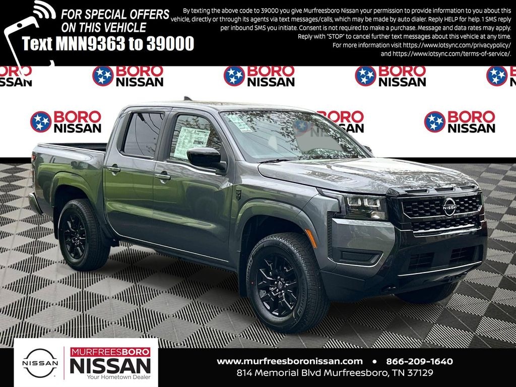 Gun Metallic 2026 Nissan Frontier SV 4WD 9-Speed Automatic with Overdrive V6 APPLE ANDRIOD CAR PLAY, REAR BACKUP CAMERA, BLUETOOTH, 4WD, 17" Alloy Wheels, 3.692 Axle Ratio, 4-Wheel Disc Brakes, 6 Speakers, ABS brakes, Air Conditioning, All Season Floor Mats, All-Weather Content Package, Alloy wheels, AM/FM radio: SiriusXM, Anti-whiplash front head restraints, Auto High-beam Headlights, Blind Spot Warning, Brake assist, Bumpers: body-color, Dark Armor Package, Dark FRONTIER Tailgate Lettering, Dark Grille Surround/Mesh/Inner Fascia, Dark Mirror Caps, Delay-off headlights, Driver door bin, Driver vanity mirror, Drop-in Bed Liner & Bumper Step, Dual front impact airbags, Dual front side impact airbags, Electronic Stability Control, Emergency communication system, Front anti-roll bar, Front Bucket Seats, Front Center Armrest, Front reading lights, Front wheel independent suspension, Fully automatic headlights, Heated Front Seats, Heated Leather Steering Wheel, HVAC Dual-Zone Front Auto a/C, Illuminated entry, Knee airbag, Low tire pressure warning, Occupant sensing airbag, Overhead airbag, Overhead console, Panic alarm, Passenger door bin, Passenger vanity mirror, Power door mirrors, Power driver seat, Power steering, Power windows, Premium Cloth Seat Trim, Radio data system, Radio: SiriusXM/AM/FM/Auxiliary/USB Audio System, Rear anti-roll bar, Rear seat center armrest, Rear side impact airbag, Rear step bumper, Remote Engine Starter, Remote keyless entry, Security system, Speed control, Speed-sensing steering, Splash Guards, Split folding rear seat, Steering wheel mounted audio controls, Tachometer, Telescoping steering wheel, Tilt steering wheel, Tow/Haul Mode Switch, Traction control, Trip computer, USB Charging Cable Kit, Variably intermittent wipers, Voltmeter, Wheels: 17" Dark, Wireless Apple CarPlay/Wireless Android Auto, NAVIGATION, ALLOY WHEELS, 4WD.