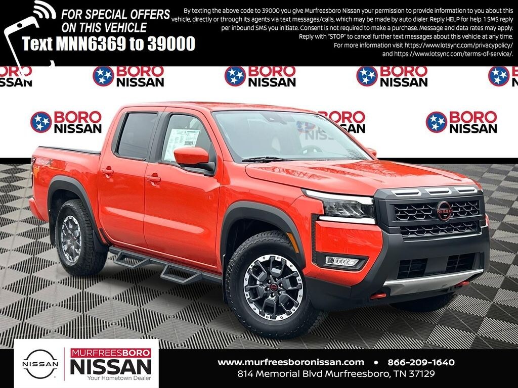 Afterburn Orange 2026 Nissan Frontier PRO-X RWD 9-Speed Automatic with Overdrive 3.8L DI DOHC 24V V6 ABS brakes, Active Cruise Control, Alloy wheels, Electronic Stability Control, Emergency communication system, Front dual zone A/C, Heated Front Bucket Seats, Illuminated entry, Low tire pressure warning, Remote keyless entry, Traction control, 17" Painted Alloy Wheels, 3.692 Axle Ratio, 4-Wheel Disc Brakes, 6 Speakers, Air Conditioning, AM/FM radio: SiriusXM, Anti-whiplash front head restraints, Auto High-beam Headlights, Automatic temperature control, Blind Spot Warning, Brake assist, Bumpers: body-color, Delay-off headlights, Driver door bin, Driver vanity mirror, Dual front impact airbags, Dual front side impact airbags, Front anti-roll bar, Front Bucket Seats, Front Center Armrest, Front fog lights, Front reading lights, Front wheel independent suspension, Fully automatic headlights, Heated steering wheel, Knee airbag, Leather steering wheel, Occupant sensing airbag, Overhead airbag, Overhead console, Panic alarm, Passenger door bin, Passenger vanity mirror, Power door mirrors, Power driver seat, Power passenger seat, Power steering, Power windows, PRO Embroidered Premium Cloth Seat Trim, Radio data system, Radio: SXM/AM/FM/AUX/USB Audio System, Rear anti-roll bar, Rear seat center armrest, Rear side impact airbag, Rear step bumper, Security system, Speed control, Speed-sensing steering, Split folding rear seat, Steering wheel mounted audio controls, Tachometer, Telescoping steering wheel, Tilt steering wheel, Trip computer, Variably intermittent wipers, Voltmeter, Wireless Apple CarPlay/Wireless Android Auto, ABS brakes, Active Cruise Control, Alloy wheels, Electronic Stability Control, Emergency communication system, Front dual zone A/C, Heated Front Bucket Seats, Illuminated entry, Low tire pressure warning, Remote keyless entry, Traction control.