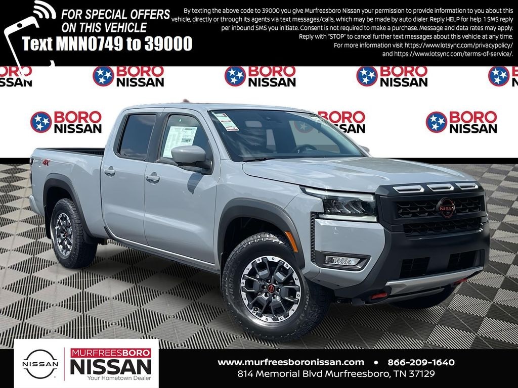 Boulder Gray Pearl 2026 Nissan Frontier PRO-4X 4WD 9-Speed Automatic with Overdrive 3.8L DI DOHC 24V V6 4WD, ABS brakes, Alloy wheels, Electronic Stability Control, Emergency communication system, Front dual zone A/C, Heated Front Bucket Seats, Illuminated entry, Low tire pressure warning, Remote keyless entry, Traction control, 17" Painted Alloy Wheels, 3.692 Axle Ratio, 4-Wheel Disc Brakes, 6 Speakers, Air Conditioning, AM/FM radio: SiriusXM, Anti-whiplash front head restraints, Auto High-beam Headlights, Automatic temperature control, Blind Spot Warning, Brake assist, Bumpers: body-color, Delay-off headlights, Driver door bin, Driver vanity mirror, Dual front impact airbags, Dual front side impact airbags, Front anti-roll bar, Front Bucket Seats, Front Center Armrest, Front fog lights, Front reading lights, Front wheel independent suspension, Fully automatic headlights, Knee airbag, Leather steering wheel, Occupant sensing airbag, Overhead airbag, Overhead console, Panic alarm, Passenger door bin, Passenger vanity mirror, Power door mirrors, Power driver seat, Power passenger seat, Power steering, Power windows, PRO Embroidered Premium Cloth Seat Trim, Radio data system, Radio: SXM/AM/FM/AUX/USB Audio System, Rear anti-roll bar, Rear seat center armrest, Rear side impact airbag, Rear step bumper, Security system, Speed control, Speed-sensing steering, Split folding rear seat, Steering wheel mounted audio controls, Tachometer, Telescoping steering wheel, Tilt steering wheel, Trip computer, Variably intermittent wipers, Voltmeter, Wireless Apple CarPlay/Wireless Android Auto, SUNROOF, LEATHER, NAVIGATION, ALLOY WHEELS, 4WD, ABS brakes, Alloy wheels, Electronic Stability Control, Emergency communication system, Front dual zone A/C, Heated Front Bucket Seats, Illuminated entry, Low tire pressure warning, Remote keyless entry, Traction control.