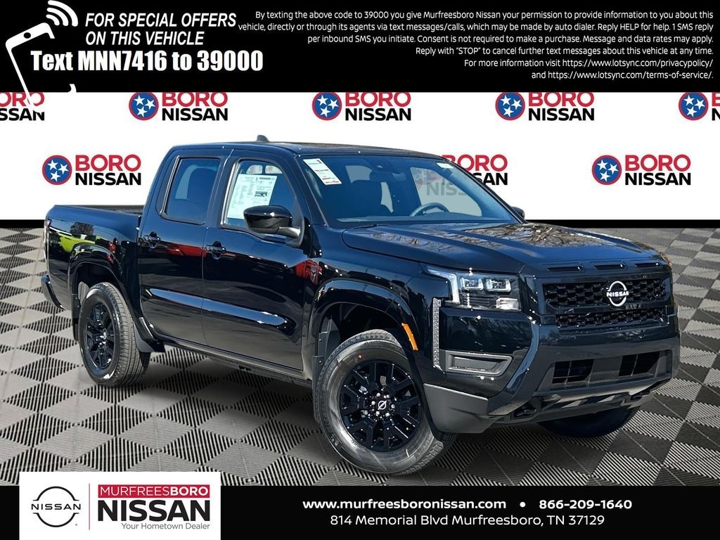 Super Black 2026 Nissan Frontier SV 4WD 9-Speed Automatic with Overdrive 3.8L DI DOHC 24V V6 APPLE ANDRIOD CAR PLAY, REAR BACKUP CAMERA, BLUETOOTH, 4WD, 17" Alloy Wheels, 3.692 Axle Ratio, 4-Wheel Disc Brakes, 6 Speakers, ABS brakes, Air Conditioning, All Season Floor Mats, All-Weather Content Package, Alloy wheels, AM/FM radio: SiriusXM, Anti-whiplash front head restraints, Auto High-beam Headlights, Blind Spot Warning, Brake assist, Bumpers: body-color, Dark Armor Package, Dark FRONTIER Tailgate Lettering, Dark Grill Surround/Mesh/Inner Fascia, Dark Mirror Caps, Delay-off headlights, Driver door bin, Driver vanity mirror, Drop-In Bed Liner & Bumper Step, Dual front impact airbags, Dual front side impact airbags, Electronic Stability Control, Emergency communication system, Front anti-roll bar, Front Bucket Seats, Front Center Armrest, Front reading lights, Front wheel independent suspension, Fully automatic headlights, Heated Front Seats, Heated Leather Steering Wheel, HVAC - Dual-Zone Front Auto A/C, Illuminated entry, Knee airbag, Low tire pressure warning, Occupant sensing airbag, Overhead airbag, Overhead console, Panic alarm, Passenger door bin, Passenger vanity mirror, Power door mirrors, Power driver seat, Power steering, Power windows, Premium Cloth Seat Trim, Radio data system, Radio: SXM/AM/FM/AUX/USB Audio System, Rear anti-roll bar, Rear seat center armrest, Rear side impact airbag, Rear step bumper, Remote Engine Starter, Remote keyless entry, Security system, Speed control, Speed-sensing steering, Splash Guards, Split folding rear seat, Steering wheel mounted audio controls, Tachometer, Telescoping steering wheel, Tilt steering wheel, Tow Package, Tow/Haul Mode Switch, Traction control, Trip computer, Variably intermittent wipers, Voltmeter, Wheels: 17" Dark, Wireless Apple CarPlay/Wireless Android Auto, NAVIGATION, ALLOY WHEELS, 4WD.