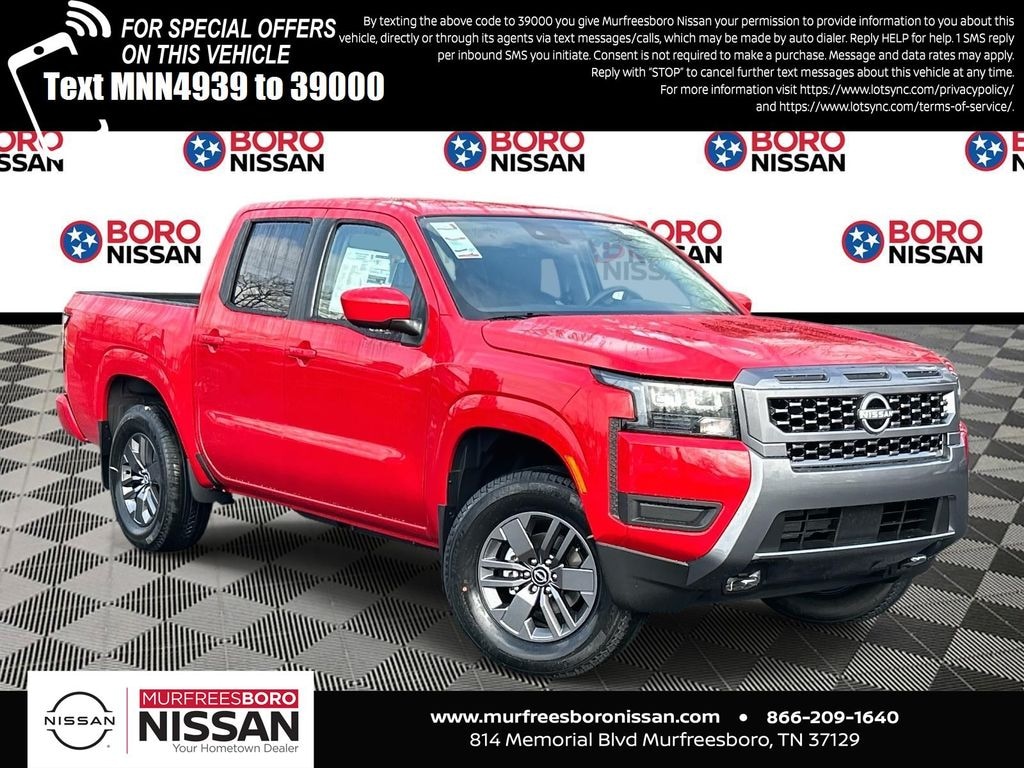 Red Alert 2026 Nissan Frontier SV 4WD 9-Speed Automatic with Overdrive V6 APPLE ANDRIOD CAR PLAY, REAR BACKUP CAMERA, BLUETOOTH, 4WD, 17" Alloy Wheels, 3.692 Axle Ratio, 4-Wheel Disc Brakes, 6 Speakers, ABS brakes, Air Conditioning, All Season Floor Mats, All-Weather Content Package, Alloy wheels, AM/FM radio: SiriusXM, Anti-whiplash front head restraints, Auto High-beam Headlights, Blind Spot Warning, Brake assist, Bumpers: body-color, Delay-off headlights, Driver door bin, Driver vanity mirror, Dual front impact airbags, Dual front side impact airbags, Electronic Stability Control, Emergency communication system, Front anti-roll bar, Front Bucket Seats, Front Center Armrest, Front reading lights, Front wheel independent suspension, Fully automatic headlights, Heated Front Seats, Heated Leather Steering Wheel, Illuminated entry, Knee airbag, Low tire pressure warning, Occupant sensing airbag, Overhead airbag, Overhead console, Panic alarm, Passenger door bin, Passenger vanity mirror, Power door mirrors, Power driver seat, Power steering, Power windows, Premium Cloth Seat Trim, Radio data system, Rear anti-roll bar, Rear seat center armrest, Rear side impact airbag, Rear step bumper, Remote Engine Starter, Remote keyless entry, Security system, Speed control, Speed-sensing steering, Splash Guards, Split folding rear seat, Steering wheel mounted audio controls, Tachometer, Telescoping steering wheel, Tilt steering wheel, Tow Package, Tow/Haul Mode Switch, Traction control, Trip computer, Variably intermittent wipers, Voltmeter, Wireless Apple CarPlay/Wireless Android Auto, NAVIGATION, ALLOY WHEELS, 4WD.