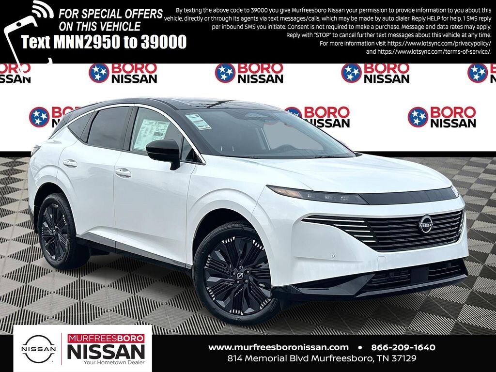 Everest White Pearl Tricoat/Super Black 2026 Nissan Murano Platinum AWD 9-Speed Automatic I4 APPLE ANDRIOD CAR PLAY, REAR BACKUP CAMERA, BLUETOOTH, 9-Speed Automatic, AWD, 10 Speakers, 2-Tone w/Premium Paint, 21" Alloy Wheels, 3-Position Cargo Area Protector, 3D Around View Monitor, 4-Wheel Disc Brakes, ABS brakes, Air Conditioning, Alloy wheels, AM/FM radio: SiriusXM w/360L, Auto High-beam Headlights, Auto tilt-away steering wheel, Auto-dimming Rear-View mirror, Automatic temperature control, Brake assist, Bumpers: body-color, Cargo Net, Cargo Package, Carpeted Floor & Cargo Mats, Child-Seat-Sensing Airbag, Compass, Delay-off headlights, Driver Attention Warning, Driver Distraction Warning, Driver door bin, Driver vanity mirror, Dual front impact airbags, Dual front side impact airbags, Electronic Stability Control, Emergency communication system: NissanConnect Services, First Aid Kit, Four wheel independent suspension, Front anti-roll bar, Front Bucket Seats, Front Center Armrest, Front dual zone A/C, Front reading lights, Fully automatic headlights, Garage door transmitter: HomeLink, Heads-Up Display, Heated & Ventilated Front Bucket Seats w/Massage, Heated door mirrors, Heated front seats, Heated rear seats, Heated steering wheel, Illuminated entry, Illuminated Kick Plates, Knee airbag, Low tire pressure warning, Memory seat, Navigation system: NissanConnect with Navigation and Services, Occupant sensing airbag, Outside temperature display, Overhead airbag, Overhead console, Painted Splash Guards, Panic alarm, Passenger door bin, Passenger vanity mirror, Power door mirrors, Power driver seat, Power Liftgate, Power moonroof: Panoramic, Power passenger seat, Power steering, Power windows, ProPILOT Assist 2.1, Quilted Semi-Aniline Leather-Appointed Seat Trim, Radio data system, Radio: NissanConnect w/Hybrid Radio, Rain sensing wipers, Rear anti-roll bar, Rear reading lights, Rear seat center armrest, Rear side impact airbag, Rear window defroster, Rear window wiper, Remote keyless entry, Retractable Cargo Cover, Security system, Speed control, Speed-Sensitive Wipers, Split folding rear seat, Spoiler, Steering wheel memory, Steering wheel mounted audio controls, Tachometer, Technology Package, Telescoping steering wheel, Tilt steering wheel, Traction control, Trip computer, Turn signal indicator mirrors, Variably intermittent wipers, Ventilated front seats, Wireless Apple CarPlay/Wireless Android Auto, SUNROOF, LEATHER, NAVIGATION, ALLOY WHEELS, 9-Speed Automatic, AWD.