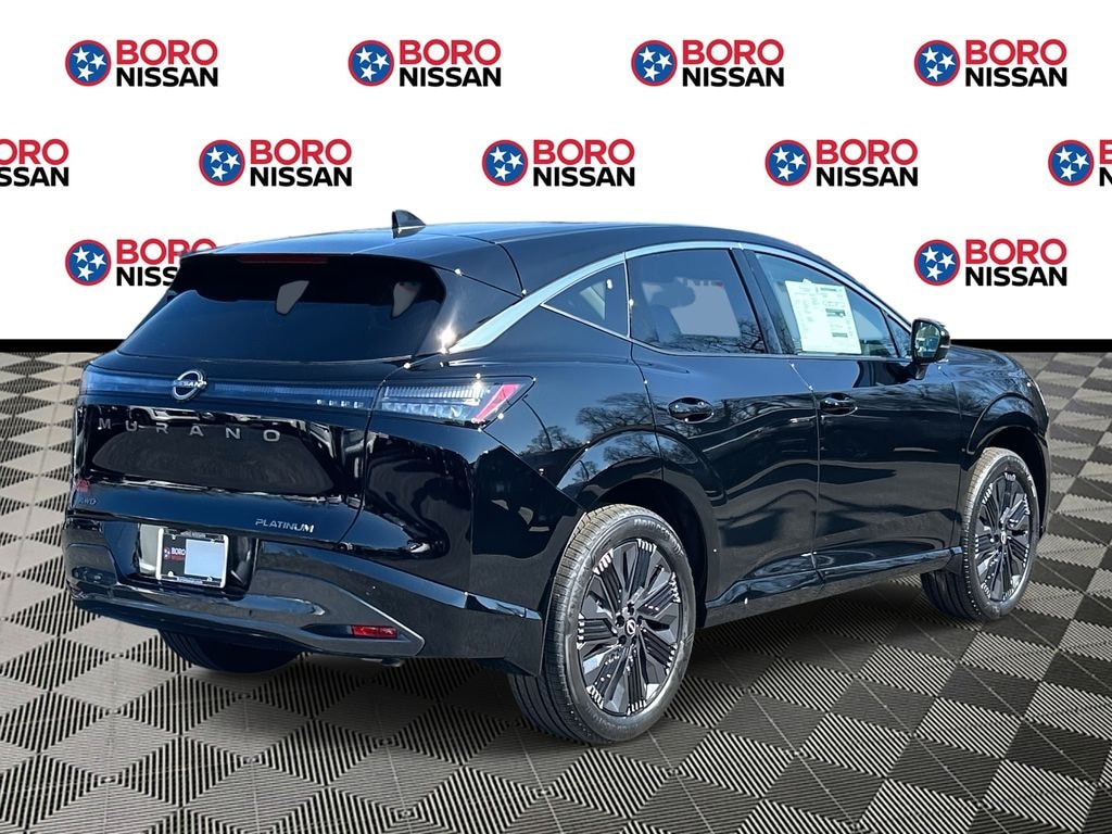 Super Black 2026 Nissan Murano Platinum AWD 9-Speed Automatic I4 APPLE ANDRIOD CAR PLAY, REAR BACKUP CAMERA, BLUETOOTH, 9-Speed Automatic, AWD, 10 Speakers, 21" Alloy Wheels, 3-Position Cargo Area Protector, 4-Wheel Disc Brakes, ABS brakes, Air Conditioning, Alloy wheels, AM/FM radio: SiriusXM w/360L, Auto High-beam Headlights, Auto tilt-away steering wheel, Auto-dimming Rear-View mirror, Automatic temperature control, Brake assist, Bumpers: body-color, Cargo Net, Cargo Package, Carpeted Floor & Cargo Mats, Child-Seat-Sensing Airbag, Compass, Delay-off headlights, Driver door bin, Driver vanity mirror, Dual front impact airbags, Dual front side impact airbags, Electronic Stability Control, Emergency communication system: NissanConnect Services, First Aid Kit, Four wheel independent suspension, Front anti-roll bar, Front Bucket Seats, Front Center Armrest, Front dual zone A/C, Front reading lights, Fully automatic headlights, Garage door transmitter: HomeLink, Heads-Up Display, Heated & Ventilated Front Bucket Seats w/Massage, Heated door mirrors, Heated front seats, Heated rear seats, Heated steering wheel, Illuminated entry, Illuminated Kick Plates, Knee airbag, Low tire pressure warning, Memory seat, Navigation system: NissanConnect with Navigation and Services, Occupant sensing airbag, Outside temperature display, Overhead airbag, Overhead console, Painted Splash Guards, Panic alarm, Passenger door bin, Passenger vanity mirror, Power door mirrors, Power driver seat, Power Liftgate, Power moonroof: Panoramic, Power passenger seat, Power steering, Power windows, Quilted Semi-Aniline Leather-Appointed Seat Trim, Radio data system, Radio: NissanConnect w/Hybrid Radio, Rain sensing wipers, Rear anti-roll bar, Rear reading lights, Rear seat center armrest, Rear side impact airbag, Rear window defroster, Rear window wiper, Remote keyless entry, Retractable Cargo Cover, Security system, Speed control, Speed-Sensitive Wipers, Split folding rear seat, Spoiler, Steering wheel memory, Steering wheel mounted audio controls, Tablet Holder, Tachometer, Telescoping steering wheel, Tilt steering wheel, Traction control, Trip computer, Turn signal indicator mirrors, Variably intermittent wipers, Ventilated front seats, Wireless Apple CarPlay/Wireless Android Auto, SUNROOF, LEATHER, NAVIGATION, ALLOY WHEELS, 9-Speed Automatic, AWD.