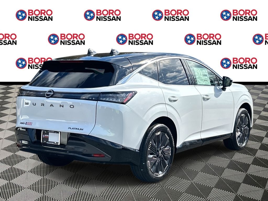 Everest White Pearl Tricoat/Super Black 2026 Nissan Murano Platinum AWD 9-Speed Automatic I4 APPLE ANDRIOD CAR PLAY, REAR BACKUP CAMERA, BLUETOOTH, 9-Speed Automatic, AWD, 10 Speakers, 2-Tone w/Premium Paint, 21" Alloy Wheels, 3-Position Cargo Area Protector, 3D Around View Monitor, 4-Wheel Disc Brakes, ABS brakes, Air Conditioning, Alloy wheels, AM/FM radio: SiriusXM w/360L, Auto High-beam Headlights, Auto tilt-away steering wheel, Auto-dimming Rear-View mirror, Automatic temperature control, Brake assist, Bumpers: body-color, Cargo Net, Cargo Package, Carpeted Floor & Cargo Mats, Child-Seat-Sensing Airbag, Compass, Delay-off headlights, Driver Attention Warning, Driver Distraction Warning, Driver door bin, Driver vanity mirror, Dual front impact airbags, Dual front side impact airbags, Electronic Stability Control, Emergency communication system: NissanConnect Services, First Aid Kit, Four wheel independent suspension, Front anti-roll bar, Front Bucket Seats, Front Center Armrest, Front dual zone A/C, Front reading lights, Fully automatic headlights, Garage door transmitter: HomeLink, Heads-Up Display, Heated & Ventilated Front Bucket Seats w/Massage, Heated door mirrors, Heated front seats, Heated rear seats, Heated steering wheel, Illuminated entry, Illuminated Kick Plates, Knee airbag, Low tire pressure warning, Memory seat, Navigation system: NissanConnect with Navigation and Services, Occupant sensing airbag, Outside temperature display, Overhead airbag, Overhead console, Painted Splash Guards, Panic alarm, Passenger door bin, Passenger vanity mirror, Power door mirrors, Power driver seat, Power Liftgate, Power moonroof: Panoramic, Power passenger seat, Power steering, Power windows, ProPILOT Assist 2.1, Quilted Semi-Aniline Leather-Appointed Seat Trim, Radio data system, Radio: NissanConnect w/Hybrid Radio, Rain sensing wipers, Rear anti-roll bar, Rear reading lights, Rear seat center armrest, Rear side impact airbag, Rear window defroster, Rear window wiper, Remote keyless entry, Retractable Cargo Cover, Security system, Speed control, Speed-Sensitive Wipers, Split folding rear seat, Spoiler, Steering wheel memory, Steering wheel mounted audio controls, Tachometer, Technology Package, Telescoping steering wheel, Tilt steering wheel, Traction control, Trip computer, Turn signal indicator mirrors, Variably intermittent wipers, Ventilated front seats, Wireless Apple CarPlay/Wireless Android Auto, SUNROOF, LEATHER, NAVIGATION, ALLOY WHEELS, 9-Speed Automatic, AWD.