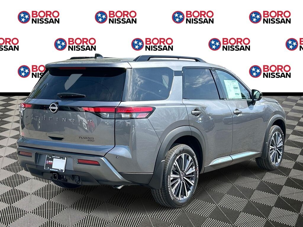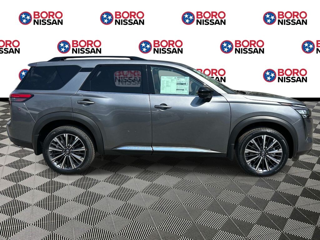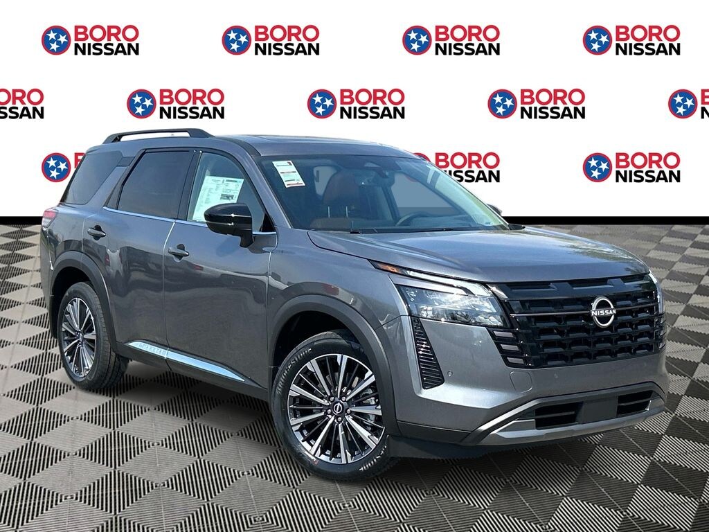 Gun Metallic 2026 Nissan Pathfinder Platinum 4WD 9-Speed Automatic 3.5L V6 DOHC APPLE ANDRIOD CAR PLAY, REAR BACKUP CAMERA, BLUETOOTH, 4WD, 13 Speakers, 3rd row seats: bench, 4-Piece Black Splash Guards, 4-Wheel Disc Brakes, ABS brakes, Air Conditioning, Alloy wheels, AM/FM radio: SiriusXM w/360L, Auto High-beam Headlights, Auto tilt-away steering wheel, Auto-dimming Rear-View mirror, Automatic temperature control, Bench Seat Carpeted Floor Mats, Bodyside moldings, Bose Premium Audio System, Brake assist, Bumpers: body-color, Cargo Area Protector, Cargo Net, Cargo Package, Climate Controlled Front Bucket Seats, Delay-off headlights, Driver door bin, Driver vanity mirror, Dual front impact airbags, Dual front side impact airbags, Electronic Stability Control, Emergency communication system: NissanConnect Services, First Aid, Four wheel independent suspension, Front anti-roll bar, Front Bucket Seats, Front Center Armrest, Front dual zone A/C, Front reading lights, Fully automatic headlights, Garage door transmitter: HomeLink, Heads-Up Display, Heated door mirrors, Heated front seats, Heated rear seats, Heated steering wheel, Illuminated entry, Knee airbag, Low tire pressure warning, Memory seat, NissanConnect featuring Apple CarPlay and Android Auto, Occupant sensing airbag, Outside temperature display, Overhead airbag, Overhead console, Panic alarm, Passenger door bin, Passenger vanity mirror, Power door mirrors, Power driver seat, Power Liftgate, Power moonroof, Power passenger seat, Power steering, Power windows, Radio data system, Radio: AM/FM Audio System with NissanConnect, Rain sensing wipers, Rear air conditioning, Rear anti-roll bar, Rear reading lights, Rear seat center armrest, Rear side impact airbag, Rear window defroster, Rear window wiper, Reclining 3rd row seat, Remote keyless entry, Security system, Semi-Aniline Leather-Appointed Seating Surfaces, Speed control, Speed-sensing steering, Speed-Sensitive Wipers, Split folding rear seat, Spoiler, Steering wheel memory, Steering wheel mounted audio controls, Tachometer, Telescoping steering wheel, Tilt steering wheel, Traction control, Trip computer, Turn signal indicator mirrors, Variably intermittent wipers, Ventilated front seats, Wheels: 20" Machined Alloy, SUNROOF, THIRD ROW, LEATHER, NAVIGATION, ALLOY WHEELS, 4WD.