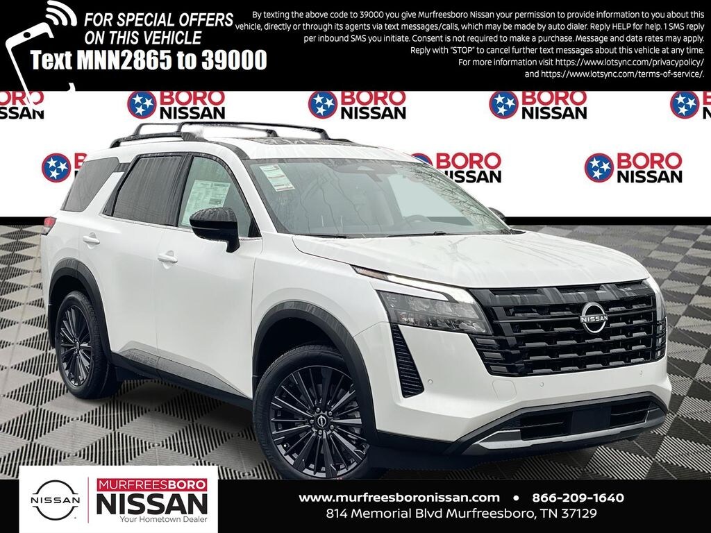Everest White Pearl Tricoat 2026 Nissan Pathfinder SL FWD 9-Speed Automatic 3.5L V6 DOHC CAPTAINS CHAIRS, APPLE ANDRIOD CAR PLAY, REAR BACKUP CAMERA, BLUETOOTH, 18" Machined Alloy Wheels, 2nd Row Manual Sunshades, 2nd-Row Captain Chairs, 3rd row seats: bench, 4-Piece Black Splash Guards, 4-Wheel Disc Brakes, 6 Speakers, ABS brakes, Air Conditioning, Alloy wheels, AM/FM radio: SiriusXM w/360L, Auto High-beam Headlights, Auto-dimming Rear-View mirror, Automatic temperature control, Bose Premium Audio System, Brake assist, Bumpers: body-color, Captain's Chairs Carpeted Floor Mats, Cross Bars, Delay-off headlights, Driver door bin, Driver vanity mirror, Dual front impact airbags, Dual front side impact airbags, Electronic Stability Control, Emergency communication system: NissanConnect Services, Four wheel independent suspension, Front anti-roll bar, Front Bucket Seats, Front Center Armrest, Front dual zone A/C, Front reading lights, Fully automatic headlights, Garage door transmitter: HomeLink, Heated door mirrors, Heated Front Bucket Seats, Heated front seats, Heated Rear Seats, Heated steering wheel, Illuminated entry, Knee airbag, Low tire pressure warning, NissanConnect featuring Apple CarPlay and Android Auto, Occupant sensing airbag, Outside temperature display, Overhead airbag, Overhead console, Panic alarm, Panoramic Moonroof, Passenger door bin, Passenger vanity mirror, Power door mirrors, Power driver seat, Power Liftgate, Power steering, Power windows, Premium Paint, Radio data system, Radio: AM/FM Audio System with NissanConnect, Rear air conditioning, Rear anti-roll bar, Rear reading lights, Rear seat center armrest, Rear side impact airbag, Rear window defroster, Rear window wiper, Reclining 3rd row seat, Remote keyless entry, Removable Center Console, Security system, SL Premium Package, Speed control, Speed-sensing steering, Split folding rear seat, Spoiler, Steering wheel mounted audio controls, Tachometer, TailorFit Appointed Seating Surfaces, Telescoping steering wheel, Tilt steering wheel, Tow Hitch Receiver and Harness, Traction control, Trip computer, Turn signal indicator mirrors, Variably intermittent wipers, Wheels: 20" Machined Alloy with Dark Metallic Gray Finish, SUNROOF, THIRD ROW, LEATHER, NAVIGATION, ALLOY WHEELS.