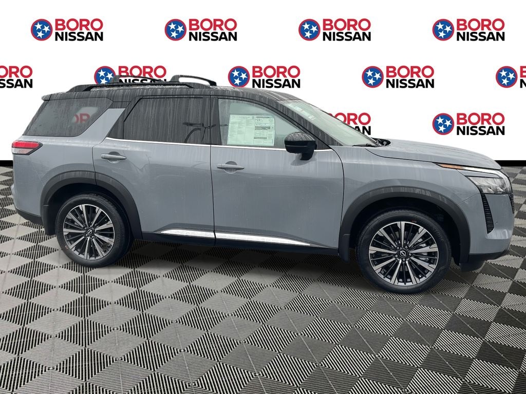 Boulder Gray/Super Black 2026 Nissan Pathfinder Platinum FWD 9-Speed Automatic 3.5L V6 DOHC CAPTAINS CHAIRS, APPLE ANDRIOD CAR PLAY, REAR BACKUP CAMERA, BLUETOOTH, 13 Speakers, 2nd-Row Captain Chairs, 2nd-Row Removable Centre Console, 3rd row seats: bench, 4-Piece Black Splash Guards, 4-Wheel Disc Brakes, ABS brakes, Air Conditioning, Alloy wheels, AM/FM radio: SiriusXM w/360L, Auto High-beam Headlights, Auto tilt-away steering wheel, Auto-dimming Rear-View mirror, Automatic temperature control, Bodyside moldings, Bose Premium Audio System, Brake assist, Bumpers: body-color, Captain's Chairs Carpeted Floor Mats, Cargo Area Protector, Cargo Net, Cargo Package, Climate Controlled Front Bucket Seats, Cross Bars, Delay-off headlights, Driver door bin, Driver vanity mirror, Dual front impact airbags, Dual front side impact airbags, Electronic Stability Control, Emergency communication system: NissanConnect Services, First Aid, Four wheel independent suspension, Front anti-roll bar, Front Bucket Seats, Front Center Armrest, Front dual zone A/C, Front reading lights, Fully automatic headlights, Garage door transmitter: HomeLink, Heads-Up Display, Heated door mirrors, Heated front seats, Heated rear seats, Heated steering wheel, Illuminated entry, Knee airbag, Low tire pressure warning, Memory seat, Navigation System, NissanConnect featuring Apple CarPlay and Android Auto, Occupant sensing airbag, Outside temperature display, Overhead airbag, Overhead console, Panic alarm, Passenger door bin, Passenger vanity mirror, Platinum Captain Chairs Package, Power door mirrors, Power driver seat, Power Liftgate, Power moonroof, Power passenger seat, Power steering, Power windows, Premium Paint and 2-Tone Roof, Radio data system, Radio: AM/FM Audio System with NissanConnect, Rain sensing wipers, Rear air conditioning, Rear anti-roll bar, Rear reading lights, Rear seat center armrest, Rear side impact airbag, Rear window defroster, Rear window wiper, Reclining 3rd row seat, Remote keyless entry, Security system, Semi-Aniline Leather-Appointed Seating Surfaces, Speed control, Speed-sensing steering, Speed-Sensitive Wipers, Split folding rear seat, Spoiler, Steering wheel memory, Steering wheel mounted audio controls, Tachometer, Telescoping steering wheel, Tilt steering wheel, Traction control, Trip computer, Turn signal indicator mirrors, Variably intermittent wipers, Ventilated front seats, Wheels: 20" Machined Alloy, SUNROOF, THIRD ROW, LEATHER, NAVIGATION, ALLOY WHEELS.