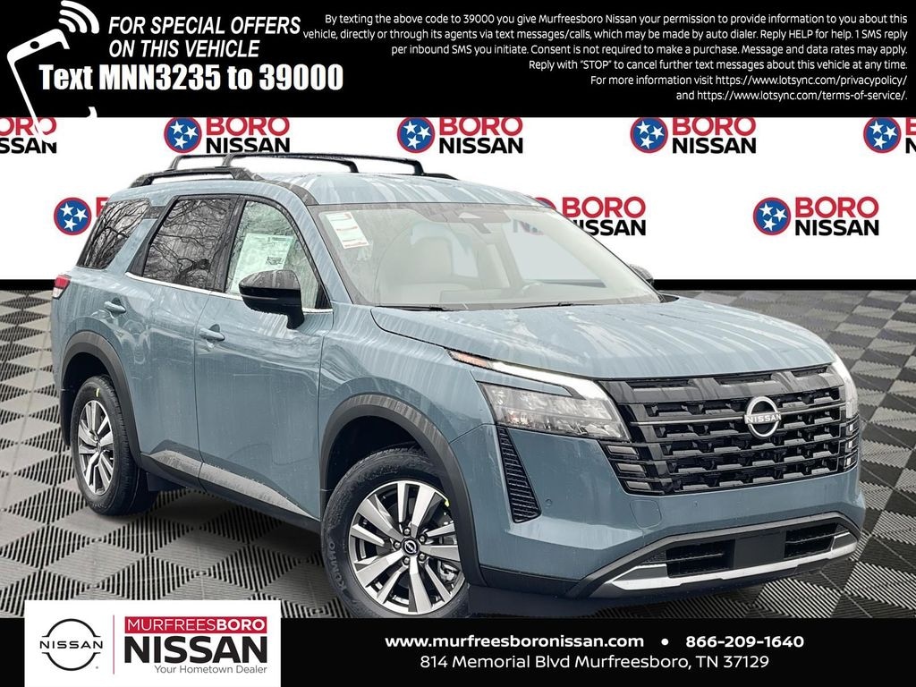 Baltic Teal 2026 Nissan Pathfinder SL 4WD 9-Speed Automatic 3.5L V6 DOHC APPLE ANDRIOD CAR PLAY, REAR BACKUP CAMERA, BLUETOOTH, 4WD, 18" Machined Alloy Wheels, 3rd row seats: bench, 4-Piece Black Splash Guards, 4-Wheel Disc Brakes, 6 Speakers, ABS brakes, Air Conditioning, Alloy wheels, AM/FM radio: SiriusXM w/360L, Auto High-beam Headlights, Auto-dimming Rear-View mirror, Automatic temperature control, Bench Seat Carpeted Floor Mats, Brake assist, Bumpers: body-color, Cross Bars, Delay-off headlights, Driver door bin, Driver vanity mirror, Dual front impact airbags, Dual front side impact airbags, Electronic Stability Control, Emergency communication system: NissanConnect Services, Four wheel independent suspension, Front anti-roll bar, Front Bucket Seats, Front Center Armrest, Front dual zone A/C, Front reading lights, Fully automatic headlights, Garage door transmitter: HomeLink, Heated door mirrors, Heated Front Bucket Seats, Heated front seats, Heated steering wheel, Illuminated entry, Knee airbag, Low tire pressure warning, NissanConnect featuring Apple CarPlay and Android Auto, Occupant sensing airbag, Outside temperature display, Overhead airbag, Overhead console, Panic alarm, Passenger door bin, Passenger vanity mirror, Power door mirrors, Power driver seat, Power Liftgate, Power steering, Power windows, Premium Paint, Radio data system, Radio: AM/FM Audio System with NissanConnect, Rear air conditioning, Rear anti-roll bar, Rear reading lights, Rear seat center armrest, Rear side impact airbag, Rear window defroster, Rear window wiper, Reclining 3rd row seat, Remote keyless entry, Security system, Speed control, Speed-sensing steering, Split folding rear seat, Spoiler, Steering wheel mounted audio controls, Tachometer, TailorFit Appointed Seating Surfaces, Telescoping steering wheel, Tilt steering wheel, Traction control, Trip computer, Turn signal indicator mirrors, Variably intermittent wipers, THIRD ROW, LEATHER, NAVIGATION, ALLOY WHEELS, 4WD.