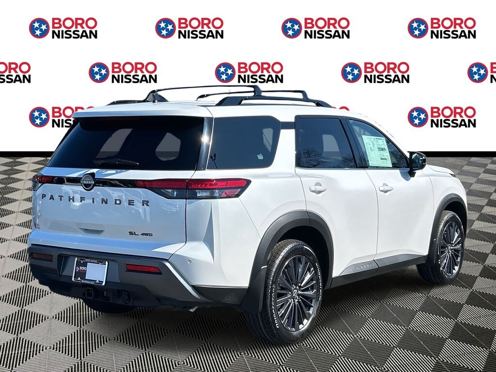 Everest White Pearl Tricoat 2026 Nissan Pathfinder SL 4WD 9-Speed Automatic 3.5L V6 DOHC CAPTAINS CHAIRS, APPLE ANDRIOD CAR PLAY, REAR BACKUP CAMERA, BLUETOOTH, 4WD, 18" Machined Alloy Wheels, 2nd Row Manual Sunshades, 2nd-Row Captain Chairs, 3rd row seats: bench, 4-Piece Black Splash Guards, 4-Wheel Disc Brakes, 6 Speakers, ABS brakes, Air Conditioning, Alloy wheels, AM/FM radio: SiriusXM w/360L, Auto High-beam Headlights, Auto-dimming Rear-View mirror, Automatic temperature control, Bose Premium Audio System, Brake assist, Bumpers: body-color, Captain's Chairs Carpeted Floor Mats, Cross Bars, Delay-off headlights, Driver door bin, Driver vanity mirror, Dual front impact airbags, Dual front side impact airbags, Electronic Stability Control, Emergency communication system: NissanConnect Services, Four wheel independent suspension, Front anti-roll bar, Front Bucket Seats, Front Center Armrest, Front dual zone A/C, Front reading lights, Fully automatic headlights, Garage door transmitter: HomeLink, Heated door mirrors, Heated Front Bucket Seats, Heated front seats, Heated Rear Seats, Heated steering wheel, Illuminated entry, Knee airbag, Low tire pressure warning, NissanConnect featuring Apple CarPlay and Android Auto, Occupant sensing airbag, Outside temperature display, Overhead airbag, Overhead console, Panic alarm, Panoramic Moonroof, Passenger door bin, Passenger vanity mirror, Power door mirrors, Power driver seat, Power Liftgate, Power steering, Power windows, Premium Paint, Radio data system, Radio: AM/FM Audio System with NissanConnect, Rear air conditioning, Rear anti-roll bar, Rear reading lights, Rear seat center armrest, Rear side impact airbag, Rear window defroster, Rear window wiper, Reclining 3rd row seat, Remote keyless entry, Removable Center Console, Security system, SL Premium Package, Speed control, Speed-sensing steering, Split folding rear seat, Spoiler, Steering wheel mounted audio controls, Tachometer, TailorFit Appointed Seating Surfaces, Telescoping steering wheel, Tilt steering wheel, Tow Hitch Receiver and Harness, Traction control, Trip computer, Turn signal indicator mirrors, Variably intermittent wipers, Wheels: 20" Machined Alloy with Dark Metallic Gray Finish, SUNROOF, THIRD ROW, LEATHER, NAVIGATION, ALLOY WHEELS, 4WD.