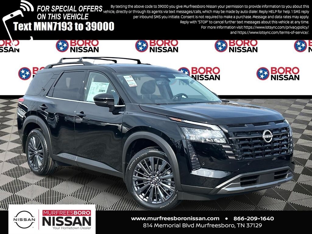 Super Black 2026 Nissan Pathfinder SL FWD 9-Speed Automatic 3.5L V6 DOHC CAPTAINS CHAIRS, APPLE ANDRIOD CAR PLAY, REAR BACKUP CAMERA, 18" Machined Alloy Wheels, 2nd Row Manual Sunshades, 2nd-Row Captain Chairs, 3rd row seats: bench, 4-Piece Black Splash Guards, 4-Wheel Disc Brakes, 6 Speakers, ABS brakes, Air Conditioning, Alloy wheels, AM/FM radio: SiriusXM w/360L, Auto High-beam Headlights, Auto-dimming Rear-View mirror, Automatic temperature control, Bose Premium Audio System, Brake assist, Bumpers: body-color, Captain's Chairs Carpeted Floor Mats, Cross Bars, Delay-off headlights, Driver door bin, Driver vanity mirror, Dual front impact airbags, Dual front side impact airbags, Electronic Stability Control, Emergency communication system: NissanConnect Services, Four wheel independent suspension, Front anti-roll bar, Front Bucket Seats, Front Center Armrest, Front dual zone A/C, Front reading lights, Fully automatic headlights, Garage door transmitter: HomeLink, Heated door mirrors, Heated Front Bucket Seats, Heated front seats, Heated Rear Seats, Heated steering wheel, Illuminated entry, Knee airbag, Low tire pressure warning, NissanConnect featuring Apple CarPlay and Android Auto, Occupant sensing airbag, Outside temperature display, Overhead airbag, Overhead console, Panic alarm, Panoramic Moonroof, Passenger door bin, Passenger vanity mirror, Power door mirrors, Power driver seat, Power Liftgate, Power steering, Power windows, Radio data system, Radio: AM/FM Audio System with NissanConnect, Rear air conditioning, Rear anti-roll bar, Rear reading lights, Rear seat center armrest, Rear side impact airbag, Rear window defroster, Rear window wiper, Reclining 3rd row seat, Remote keyless entry, Removable Center Console, Security system, SL Premium Package, Speed control, Speed-sensing steering, Split folding rear seat, Spoiler, Steering wheel mounted audio controls, Tachometer, TailorFit Appointed Seating Surfaces, Telescoping steering wheel, Tilt steering wheel, Tow Hitch Receiver and Harness, Traction control, Trip computer, Turn signal indicator mirrors, Variably intermittent wipers, Wheels: 20" Machined Alloy with Dark Metallic Gray Finish, SUNROOF, THIRD ROW, LEATHER, NAVIGATION, ALLOY WHEELS.