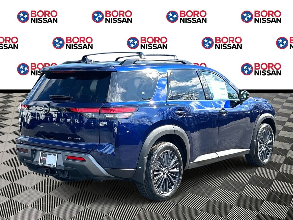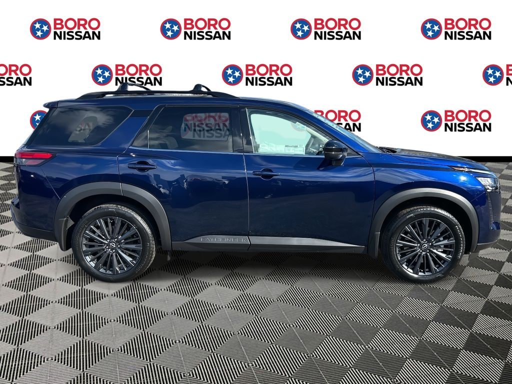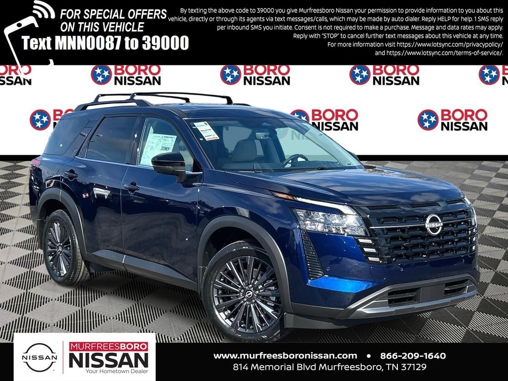 Deep Ocean Blue Pearl 2026 Nissan Pathfinder SL 4WD 9-Speed Automatic 3.5L V6 DOHC APPLE ANDRIOD CAR PLAY, REAR BACKUP CAMERA, BLUETOOTH, 4WD, 18" Machined Alloy Wheels, 2nd Row Manual Sunshades, 2nd-Row Captain Chairs, 3rd row seats: bench, 4-Piece Black Splash Guards, 4-Wheel Disc Brakes, 6 Speakers, ABS brakes, Air Conditioning, Alloy wheels, AM/FM radio: SiriusXM w/360L, Auto High-beam Headlights, Auto-dimming Rear-View mirror, Automatic temperature control, Bose Premium Audio System, Brake assist, Bumpers: body-color, Captain's Chairs Carpeted Floor Mats, Cross Bars, Delay-off headlights, Driver door bin, Driver vanity mirror, Dual front impact airbags, Dual front side impact airbags, Electronic Stability Control, Emergency communication system: NissanConnect Services, Four wheel independent suspension, Front anti-roll bar, Front Bucket Seats, Front Center Armrest, Front dual zone A/C, Front reading lights, Fully automatic headlights, Garage door transmitter: HomeLink, Heated door mirrors, Heated Front Bucket Seats, Heated front seats, Heated Rear Seats, Heated steering wheel, Illuminated entry, Knee airbag, Low tire pressure warning, NissanConnect featuring Apple CarPlay and Android Auto, Occupant sensing airbag, Outside temperature display, Overhead airbag, Overhead console, Panic alarm, Panoramic Moonroof, Passenger door bin, Passenger vanity mirror, Power door mirrors, Power driver seat, Power Liftgate, Power steering, Power windows, Radio data system, Radio: AM/FM Audio System with NissanConnect, Rear air conditioning, Rear anti-roll bar, Rear reading lights, Rear seat center armrest, Rear side impact airbag, Rear window defroster, Rear window wiper, Reclining 3rd row seat, Remote keyless entry, Removable Center Console, Security system, SL Premium Package, Speed control, Speed-sensing steering, Split folding rear seat, Spoiler, Steering wheel mounted audio controls, Tachometer, TailorFit Appointed Seating Surfaces, Telescoping steering wheel, Tilt steering wheel, Tow Hitch Receiver and Harness, Traction control, Trip computer, Turn signal indicator mirrors, Variably intermittent wipers, Wheels: 20" Machined Alloy with Dark Metallic Gray Finish, SUNROOF, THIRD ROW, LEATHER, NAVIGATION, ALLOY WHEELS, 4WD.