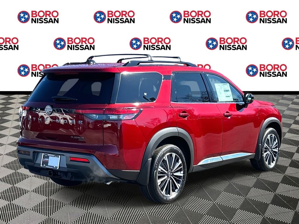 Scarlet Ember Tintcoat 2026 Nissan Pathfinder Platinum 4WD 9-Speed Automatic 3.5L V6 DOHC CAPTAINS CHAIRS, APPLE ANDRIOD CAR PLAY, REAR BACKUP CAMERA, BLUETOOTH, 4WD, 13 Speakers, 2nd-Row Captain Chairs, 2nd-Row Removable Centre Console, 3rd row seats: bench, 4-Piece Black Splash Guards, 4-Wheel Disc Brakes, ABS brakes, Air Conditioning, Alloy wheels, AM/FM radio: SiriusXM w/360L, Auto High-beam Headlights, Auto tilt-away steering wheel, Auto-dimming Rear-View mirror, Automatic temperature control, Bodyside moldings, Bose Premium Audio System, Brake assist, Bumpers: body-color, Captain's Chairs Carpeted Floor Mats, Cargo Area Protector, Cargo Net, Cargo Package, Climate Controlled Front Bucket Seats, Cross Bars, Delay-off headlights, Driver door bin, Driver vanity mirror, Dual front impact airbags, Dual front side impact airbags, Electronic Stability Control, Emergency communication system: NissanConnect Services, First Aid, Four wheel independent suspension, Front anti-roll bar, Front Bucket Seats, Front Center Armrest, Front dual zone A/C, Front reading lights, Fully automatic headlights, Garage door transmitter: HomeLink, Heads-Up Display, Heated door mirrors, Heated front seats, Heated rear seats, Heated steering wheel, Illuminated entry, Knee airbag, Low tire pressure warning, Memory seat, Navigation system: NissanConnect with Navigation and Services, NissanConnect featuring Apple CarPlay and Android Auto, Occupant sensing airbag, Outside temperature display, Overhead airbag, Overhead console, Panic alarm, Passenger door bin, Passenger vanity mirror, Platinum Captain Chairs Package, Power door mirrors, Power driver seat, Power Liftgate, Power moonroof, Power passenger seat, Power steering, Power windows, Premium Paint, Radio data system, Radio: AM/FM Audio System with NissanConnect, Rain sensing wipers, Rear air conditioning, Rear anti-roll bar, Rear reading lights, Rear seat center armrest, Rear side impact airbag, Rear window defroster, Rear window wiper, Reclining 3rd row seat, Remote keyless entry, Security system, Semi-Aniline Leather-Appointed Seating Surfaces, Speed control, Speed-sensing steering, Speed-Sensitive Wipers, Split folding rear seat, Spoiler, Steering wheel memory, Steering wheel mounted audio controls, Tachometer, Telescoping steering wheel, Tilt steering wheel, Traction control, Trip computer, Turn signal indicator mirrors, Variably intermittent wipers, Ventilated front seats, Wheels: 20" Machined Alloy, SUNROOF, THIRD ROW, LEATHER, NAVIGATION, ALLOY WHEELS, 4WD.