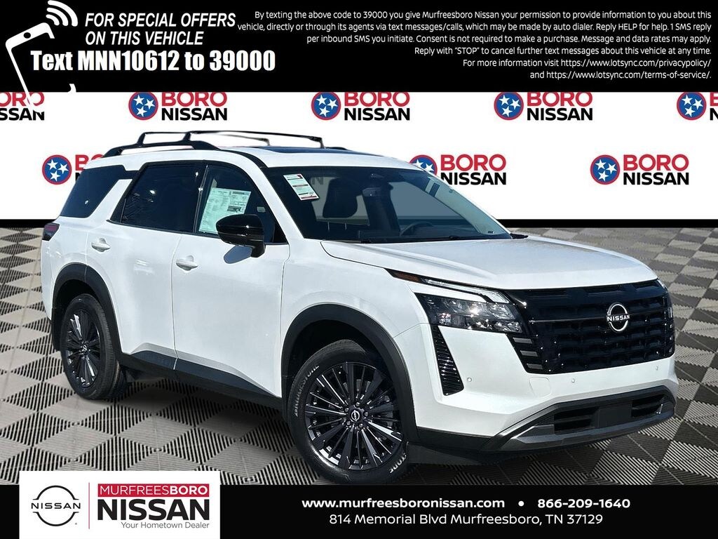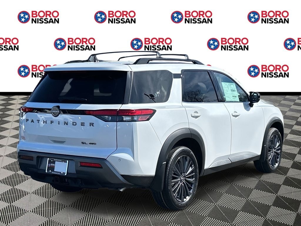 Everest White Pearl Tricoat 2026 Nissan Pathfinder SL 4WD 9-Speed Automatic 3.5L V6 DOHC CAPTAINS CHAIRS, APPLE ANDRIOD CAR PLAY, REAR BACKUP CAMERA, BLUETOOTH, 4WD, 18" Machined Alloy Wheels, 2nd Row Manual Sunshades, 2nd-Row Captain Chairs, 3rd row seats: bench, 4-Piece Black Splash Guards, 4-Wheel Disc Brakes, 6 Speakers, ABS brakes, Air Conditioning, Alloy wheels, AM/FM radio: SiriusXM w/360L, Auto High-beam Headlights, Auto-dimming Rear-View mirror, Automatic temperature control, Bose Premium Audio System, Brake assist, Bumpers: body-color, Captain's Chairs Carpeted Floor Mats, Cross Bars, Delay-off headlights, Driver door bin, Driver vanity mirror, Dual front impact airbags, Dual front side impact airbags, Electronic Stability Control, Emergency communication system: NissanConnect Services, Four wheel independent suspension, Front anti-roll bar, Front Bucket Seats, Front Center Armrest, Front dual zone A/C, Front reading lights, Fully automatic headlights, Garage door transmitter: HomeLink, Heated door mirrors, Heated Front Bucket Seats, Heated front seats, Heated Rear Seats, Heated steering wheel, Illuminated entry, Knee airbag, Low tire pressure warning, NissanConnect featuring Apple CarPlay and Android Auto, Occupant sensing airbag, Outside temperature display, Overhead airbag, Overhead console, Panic alarm, Panoramic Moonroof, Passenger door bin, Passenger vanity mirror, Power door mirrors, Power driver seat, Power Liftgate, Power steering, Power windows, Premium Paint, Radio data system, Radio: AM/FM Audio System with NissanConnect, Rear air conditioning, Rear anti-roll bar, Rear reading lights, Rear seat center armrest, Rear side impact airbag, Rear window defroster, Rear window wiper, Reclining 3rd row seat, Remote keyless entry, Removable Center Console, Security system, SL Premium Package, Speed control, Speed-sensing steering, Split folding rear seat, Spoiler, Steering wheel mounted audio controls, Tachometer, TailorFit Appointed Seating Surfaces, Telescoping steering wheel, Tilt steering wheel, Tow Hitch Receiver and Harness, Traction control, Trip computer, Turn signal indicator mirrors, Variably intermittent wipers, Wheels: 20" Machined Alloy with Dark Metallic Gray Finish, SUNROOF, THIRD ROW, LEATHER, NAVIGATION, ALLOY WHEELS, 4WD.