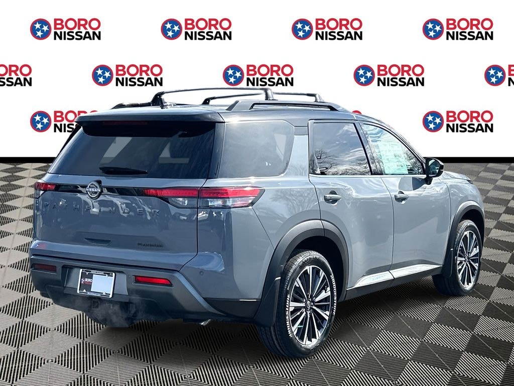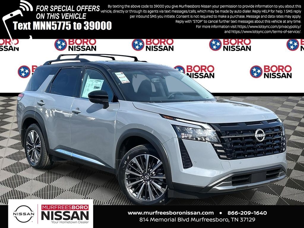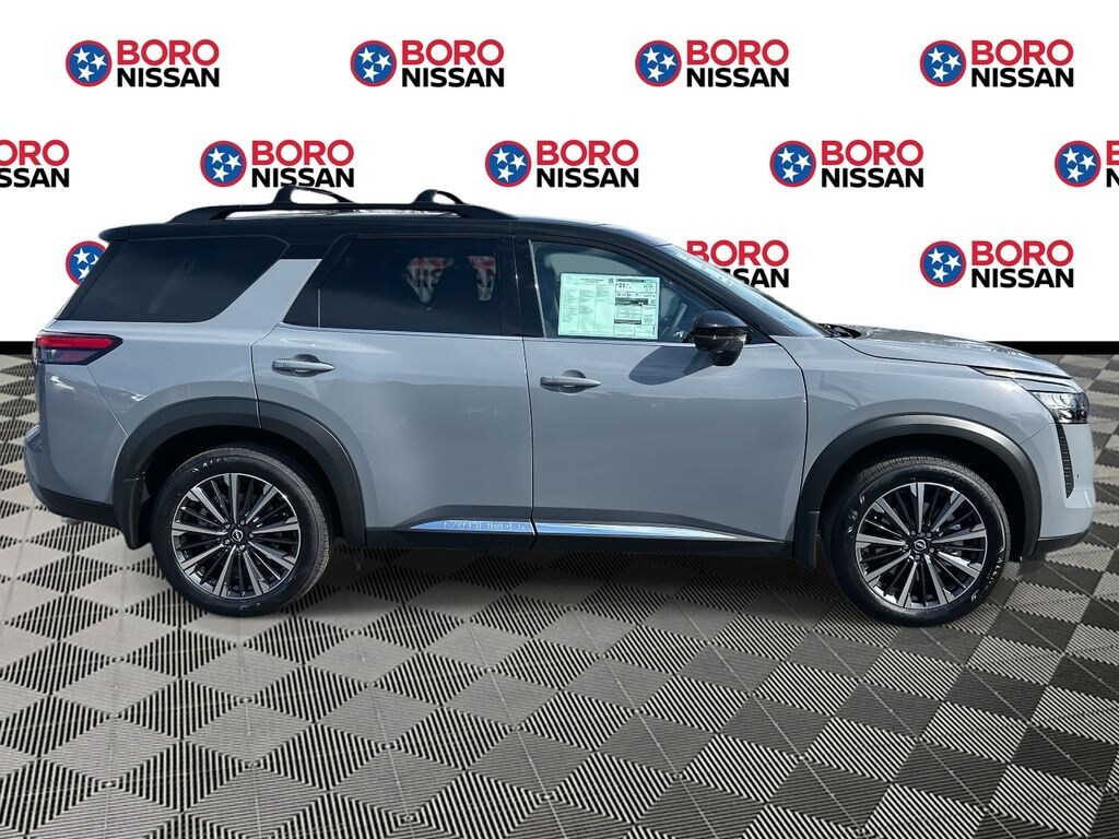 Boulder Gray/Super Black 2026 Nissan Pathfinder Platinum FWD 9-Speed Automatic 3.5L V6 DOHC CAPTAINS CHAIRS, APPLE ANDRIOD CAR PLAY, REAR BACKUP CAMERA, BLUETOOTH, 13 Speakers, 2nd-Row Captain Chairs, 2nd-Row Removable Centre Console, 3rd row seats: bench, 4-Piece Black Splash Guards, 4-Wheel Disc Brakes, ABS brakes, Air Conditioning, Alloy wheels, AM/FM radio: SiriusXM w/360L, Auto High-beam Headlights, Auto tilt-away steering wheel, Auto-dimming Rear-View mirror, Automatic temperature control, Bodyside moldings, Bose Premium Audio System, Brake assist, Bumpers: body-color, Captain's Chairs Carpeted Floor Mats, Cargo Area Protector, Cargo Net, Cargo Package, Climate Controlled Front Bucket Seats, Cross Bars, Delay-off headlights, Driver door bin, Driver vanity mirror, Dual front impact airbags, Dual front side impact airbags, Electronic Stability Control, Emergency communication system: NissanConnect Services, First Aid, Four wheel independent suspension, Front anti-roll bar, Front Bucket Seats, Front Center Armrest, Front dual zone A/C, Front reading lights, Fully automatic headlights, Garage door transmitter: HomeLink, Heads-Up Display, Heated door mirrors, Heated front seats, Heated rear seats, Heated steering wheel, Illuminated entry, Knee airbag, Low tire pressure warning, Memory seat, NissanConnect featuring Apple CarPlay and Android Auto, Occupant sensing airbag, Outside temperature display, Overhead airbag, Overhead console, Panic alarm, Passenger door bin, Passenger vanity mirror, Platinum Captain Chairs Package, Power door mirrors, Power driver seat, Power Liftgate, Power moonroof, Power passenger seat, Power steering, Power windows, Premium Paint and 2-Tone Roof, Radio data system, Radio: AM/FM Audio System with NissanConnect, Rain sensing wipers, Rear air conditioning, Rear anti-roll bar, Rear reading lights, Rear seat center armrest, Rear side impact airbag, Rear window defroster, Rear window wiper, Reclining 3rd row seat, Remote keyless entry, Security system, Semi-Aniline Leather-Appointed Seating Surfaces, Speed control, Speed-sensing steering, Speed-Sensitive Wipers, Split folding rear seat, Spoiler, Steering wheel memory, Steering wheel mounted audio controls, Tachometer, Telescoping steering wheel, Tilt steering wheel, Traction control, Trip computer, Turn signal indicator mirrors, Variably intermittent wipers, Ventilated front seats, Wheels: 20" Machined Alloy, SUNROOF, THIRD ROW, LEATHER, NAVIGATION, ALLOY WHEELS.