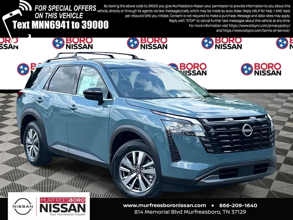 Baltic Teal 2026 Nissan Pathfinder SL FWD 9-Speed Automatic 3.5L V6 DOHC APPLE ANDRIOD CAR PLAY, REAR BACKUP CAMERA, BLUETOOTH, 18" Machined Alloy Wheels, 3rd row seats: bench, 4-Piece Black Splash Guards, 4-Wheel Disc Brakes, 6 Speakers, ABS brakes, Air Conditioning, Alloy wheels, AM/FM radio: SiriusXM w/360L, Auto High-beam Headlights, Auto-dimming Rear-View mirror, Automatic temperature control, Bench Seat Carpeted Floor Mats, Brake assist, Bumpers: body-color, Cross Bars, Delay-off headlights, Driver door bin, Driver vanity mirror, Dual front impact airbags, Dual front side impact airbags, Electronic Stability Control, Emergency communication system: NissanConnect Services, Four wheel independent suspension, Front anti-roll bar, Front Bucket Seats, Front Center Armrest, Front dual zone A/C, Front reading lights, Fully automatic headlights, Garage door transmitter: HomeLink, Heated door mirrors, Heated Front Bucket Seats, Heated front seats, Heated steering wheel, Illuminated entry, Knee airbag, Low tire pressure warning, NissanConnect featuring Apple CarPlay and Android Auto, Occupant sensing airbag, Outside temperature display, Overhead airbag, Overhead console, Panic alarm, Passenger door bin, Passenger vanity mirror, Power door mirrors, Power driver seat, Power Liftgate, Power steering, Power windows, Premium Paint, Radio data system, Radio: AM/FM Audio System with NissanConnect, Rear air conditioning, Rear anti-roll bar, Rear reading lights, Rear seat center armrest, Rear side impact airbag, Rear window defroster, Rear window wiper, Reclining 3rd row seat, Remote keyless entry, Security system, Speed control, Speed-sensing steering, Split folding rear seat, Spoiler, Steering wheel mounted audio controls, Tachometer, TailorFit Appointed Seating Surfaces, Telescoping steering wheel, Tilt steering wheel, Traction control, Trip computer, Turn signal indicator mirrors, Variably intermittent wipers, THIRD ROW, LEATHER, NAVIGATION, ALLOY WHEELS.
