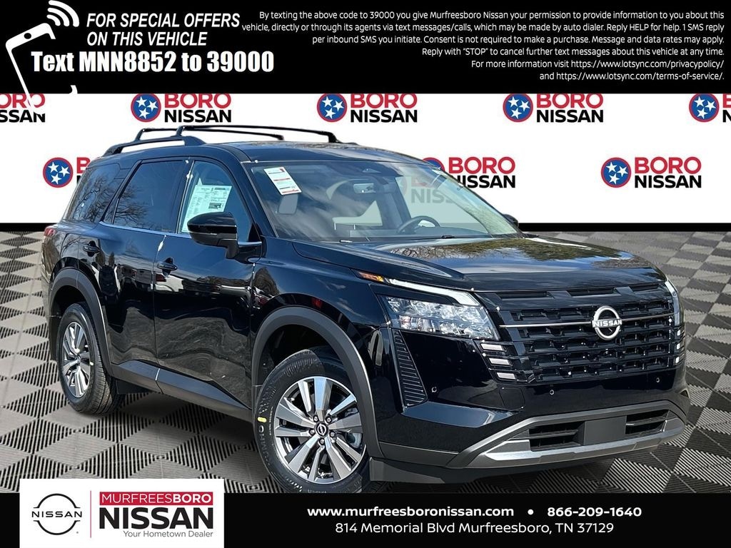 Super Black 2026 Nissan Pathfinder SL FWD 9-Speed Automatic 3.5L V6 DOHC APPLE ANDRIOD CAR PLAY, REAR BACKUP CAMERA, BLUETOOTH, 18" Machined Alloy Wheels, 3rd row seats: bench, 4-Piece Black Splash Guards, 4-Wheel Disc Brakes, 6 Speakers, ABS brakes, Air Conditioning, Alloy wheels, AM/FM radio: SiriusXM w/360L, Auto High-beam Headlights, Auto-dimming Rear-View mirror, Automatic temperature control, Bench Seat Carpeted Floor Mats, Brake assist, Bumpers: body-color, Cross Bars, Delay-off headlights, Driver door bin, Driver vanity mirror, Dual front impact airbags, Dual front side impact airbags, Electronic Stability Control, Emergency communication system: NissanConnect Services, Four wheel independent suspension, Front anti-roll bar, Front Bucket Seats, Front Center Armrest, Front dual zone A/C, Front reading lights, Fully automatic headlights, Garage door transmitter: HomeLink, Heated door mirrors, Heated Front Bucket Seats, Heated front seats, Heated steering wheel, Illuminated entry, Knee airbag, Low tire pressure warning, NissanConnect featuring Apple CarPlay and Android Auto, Occupant sensing airbag, Outside temperature display, Overhead airbag, Overhead console, Panic alarm, Passenger door bin, Passenger vanity mirror, Power door mirrors, Power driver seat, Power Liftgate, Power steering, Power windows, Radio data system, Radio: AM/FM Audio System with NissanConnect, Rear air conditioning, Rear anti-roll bar, Rear reading lights, Rear seat center armrest, Rear side impact airbag, Rear window defroster, Rear window wiper, Reclining 3rd row seat, Remote keyless entry, Security system, Speed control, Speed-sensing steering, Split folding rear seat, Spoiler, Steering wheel mounted audio controls, Tachometer, TailorFit Appointed Seating Surfaces, Telescoping steering wheel, Tilt steering wheel, Traction control, Trip computer, Turn signal indicator mirrors, Variably intermittent wipers, THIRD ROW, LEATHER, NAVIGATION, ALLOY WHEELS.