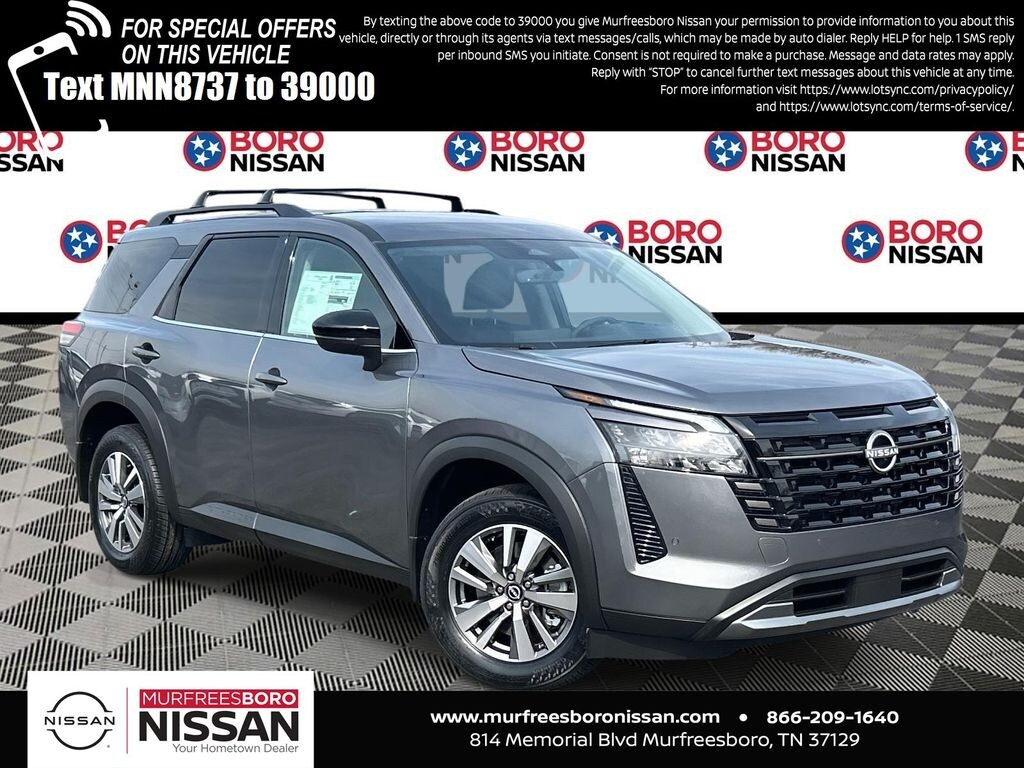 Gun Metallic 2026 Nissan Pathfinder SL 4WD 9-Speed Automatic 3.5L V6 DOHC CAPTAINS CHAIRS, APPLE ANDRIOD CAR PLAY, REAR BACKUP CAMERA, BLUETOOTH, 4WD, 18" Machined Alloy Wheels, 2nd Row Manual Sunshades, 2nd-Row Captain Chairs, 3rd row seats: bench, 4-Piece Black Splash Guards, 4-Wheel Disc Brakes, 6 Speakers, ABS brakes, Air Conditioning, Alloy wheels, AM/FM radio: SiriusXM w/360L, Auto High-beam Headlights, Auto-dimming Rear-View mirror, Automatic temperature control, Bose Premium Audio System, Brake assist, Bumpers: body-color, Captain's Chairs Carpeted Floor Mats, Cross Bars, Delay-off headlights, Driver door bin, Driver vanity mirror, Dual front impact airbags, Dual front side impact airbags, Electronic Stability Control, Emergency communication system: NissanConnect Services, Four wheel independent suspension, Front anti-roll bar, Front Bucket Seats, Front Center Armrest, Front dual zone A/C, Front reading lights, Fully automatic headlights, Garage door transmitter: HomeLink, Heated door mirrors, Heated Front Bucket Seats, Heated front seats, Heated Rear Seats, Heated steering wheel, Illuminated entry, Knee airbag, Low tire pressure warning, NissanConnect featuring Apple CarPlay and Android Auto, Occupant sensing airbag, Outside temperature display, Overhead airbag, Overhead console, Panic alarm, Panoramic Moonroof, Passenger door bin, Passenger vanity mirror, Power door mirrors, Power driver seat, Power Liftgate, Power steering, Power windows, Radio data system, Radio: AM/FM Audio System with NissanConnect, Rear air conditioning, Rear anti-roll bar, Rear reading lights, Rear seat center armrest, Rear side impact airbag, Rear window defroster, Rear window wiper, Reclining 3rd row seat, Remote keyless entry, Removable Center Console, Security system, SL Premium Package, Speed control, Speed-sensing steering, Split folding rear seat, Spoiler, Steering wheel mounted audio controls, Tachometer, TailorFit Appointed Seating Surfaces, Telescoping steering wheel, Tilt steering wheel, Tow Hitch Receiver and Harness, Traction control, Trip computer, Turn signal indicator mirrors, Variably intermittent wipers, Wheels: 20" Machined Alloy with Dark Metallic Gray Finish, SUNROOF, THIRD ROW, LEATHER, NAVIGATION, ALLOY WHEELS, 4WD.