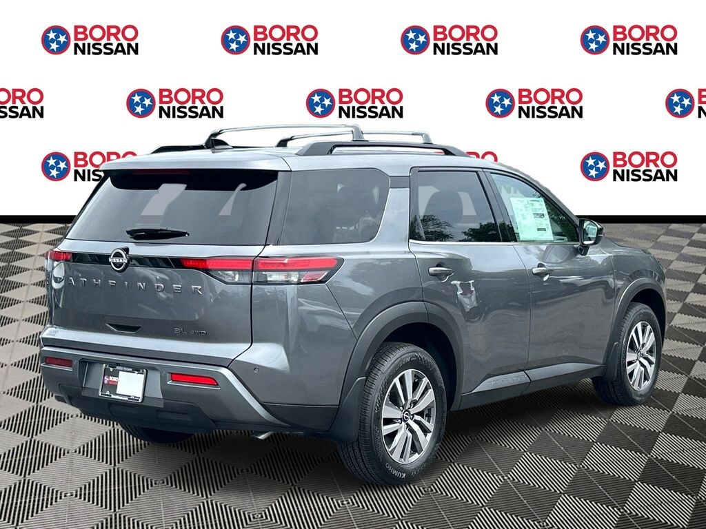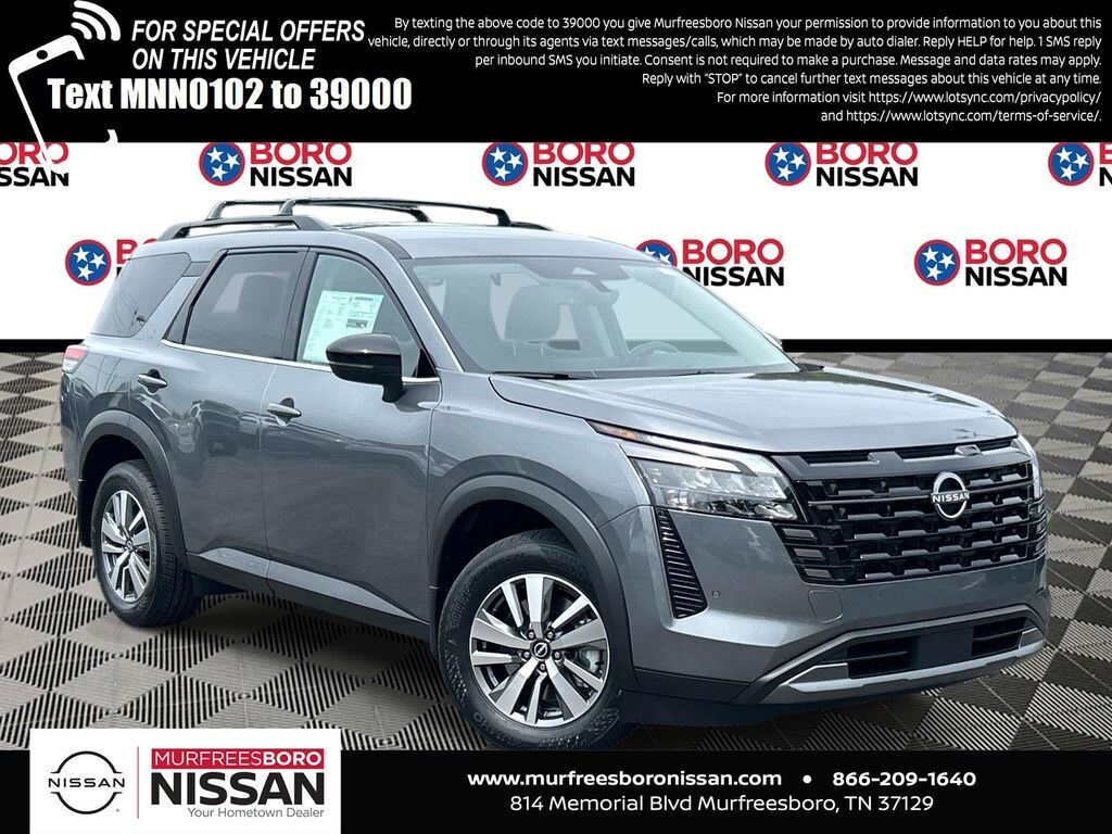 Gun Metallic 2026 Nissan Pathfinder SL 4WD 9-Speed Automatic 3.5L V6 DOHC 4WD, 18" Machined Alloy Wheels, 3rd row seats: bench, 4-Piece Black Splash Guards, 4-Wheel Disc Brakes, 6 Speakers, ABS brakes, Air Conditioning, Alloy wheels, AM/FM radio: SiriusXM w/360L, Auto High-beam Headlights, Auto-dimming Rear-View mirror, Automatic temperature control, Bench Seat Carpeted Floor Mats, Brake assist, Bumpers: body-color, Cargo Area Protector, Cargo Net, Cargo Package, Cross Bars, Delay-off headlights, Driver door bin, Driver vanity mirror, Dual front impact airbags, Dual front side impact airbags, Electronic Stability Control, Emergency communication system: NissanConnect Services, First Aid, Four wheel independent suspension, Front anti-roll bar, Front Bucket Seats, Front Center Armrest, Front dual zone A/C, Front reading lights, Fully automatic headlights, Garage door transmitter: HomeLink, Heated door mirrors, Heated Front Bucket Seats, Heated front seats, Heated steering wheel, Illuminated entry, Knee airbag, Low tire pressure warning, Nissan USB Charging Cable Set, NissanConnect featuring Apple CarPlay and Android Auto, Occupant sensing airbag, Outside temperature display, Overhead airbag, Overhead console, Panic alarm, Passenger door bin, Passenger vanity mirror, Power door mirrors, Power driver seat, Power Liftgate, Power steering, Power windows, Radio data system, Radio: AM/FM Audio System with NissanConnect, Rear air conditioning, Rear anti-roll bar, Rear reading lights, Rear seat center armrest, Rear side impact airbag, Rear window defroster, Rear window wiper, Reclining 3rd row seat, Remote keyless entry, Security system, Speed control, Speed-sensing steering, Split folding rear seat, Spoiler, Steering wheel mounted audio controls, Tachometer, TailorFit Appointed Seating Surfaces, Telescoping steering wheel, Tilt steering wheel, Traction control, Trip computer, Turn signal indicator mirrors, Variably intermittent wipers, 4WD.