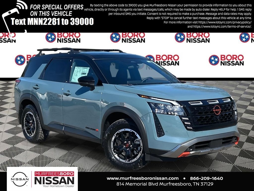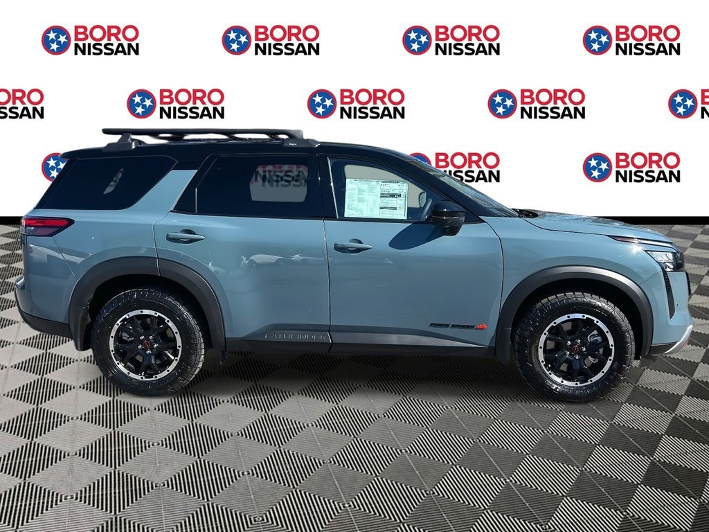Baltic Teal/Super Black 2026 Nissan Pathfinder Rock Creek 4WD 9-Speed Automatic 3.5L V6 DOHC CAPTAINS CHAIRS, APPLE ANDRIOD CAR PLAY, REAR BACKUP CAMERA, BLUETOOTH, 4WD, 18" Unique Alloy Wheels, 2nd-Row Captain Chairs, 2nd-Row Climate Control Panel, 2nd-Row Removable Centre Console, 3rd row seats: bench, 4-Piece Black Splash Guards, 4-Wheel Disc Brakes, 6 Speakers, ABS brakes, Air Conditioning, Alloy wheels, AM/FM radio: SiriusXM w/360L, Auto High-beam Headlights, Automatic temperature control, Brake assist, Delay-off headlights, Driver door bin, Driver vanity mirror, Dual front impact airbags, Dual front side impact airbags, Electronic Stability Control, Emergency communication system: NissanConnect Services, Four wheel independent suspension, Front anti-roll bar, Front Bucket Seats, Front Center Armrest, Front dual zone A/C, Front fog lights, Front reading lights, Fully automatic headlights, Garage door transmitter: myQ Connected Garage, Heated door mirrors, Heated Front Bucket Seats, Heated front seats, Heated Steering Wheel, Illuminated entry, Knee airbag, Leatherette and Cloth Seating Surfaces, Low tire pressure warning, NissanConnect featuring Apple CarPlay and Android Auto, Occupant sensing airbag, Outside temperature display, Overhead airbag, Overhead console, Panic alarm, Panoramic Moonroof, Passenger door bin, Passenger vanity mirror, Power door mirrors, Power driver seat, Power Liftgate, Power steering, Power windows, Premium Paint and 2-Tone Roof, Radio data system, Radio: AM/FM Audio System with NissanConnect, Rear air conditioning, Rear anti-roll bar, Rear reading lights, Rear side impact airbag, Rear window defroster, Rear window wiper, Reclining 3rd row seat, Remote keyless entry, Rock Creek Premium Package, Roof rack, Security system, Speed control, Speed-sensing steering, Split folding rear seat, Spoiler, Steering wheel mounted audio controls, Tachometer, Telescoping steering wheel, Tilt steering wheel, Traction control, Trip computer, Turn signal indicator mirrors, Variably intermittent wipers, SUNROOF, THIRD ROW, LEATHER, NAVIGATION, ALLOY WHEELS, 4WD.