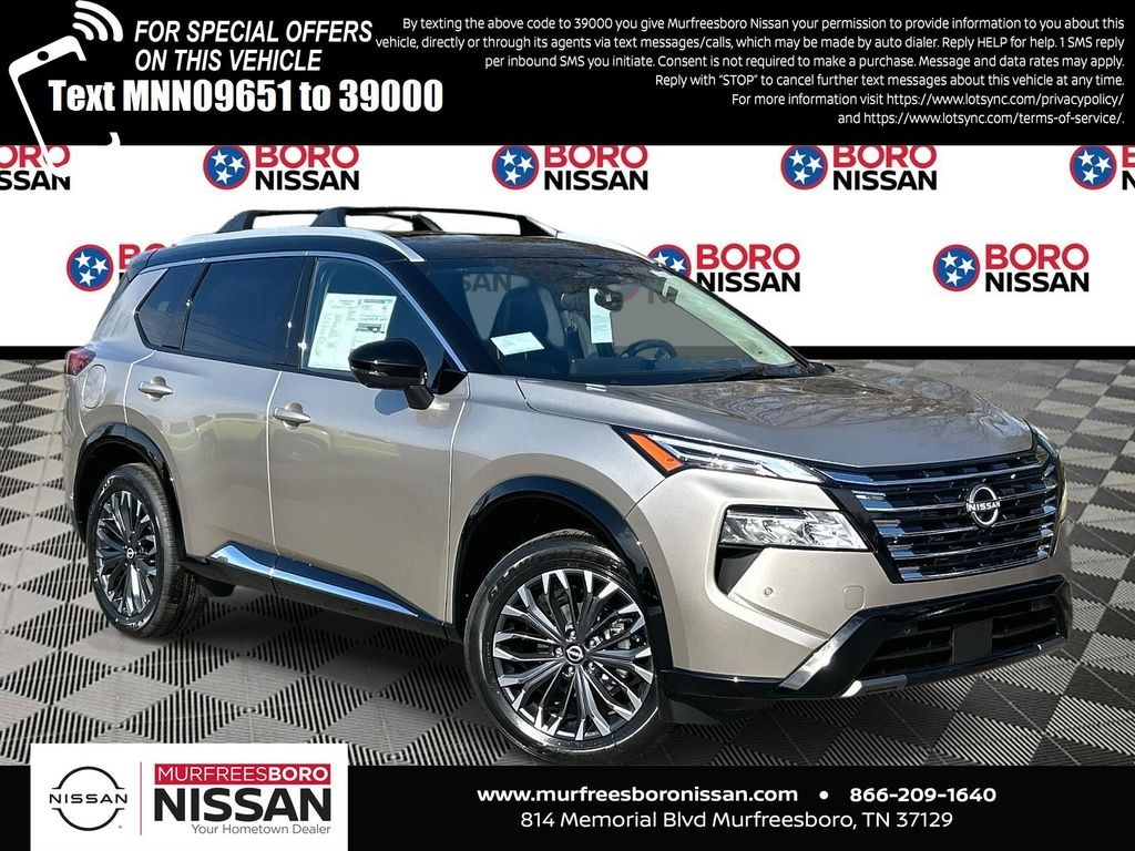 Champagne Silver Metallic 2026 Nissan Rogue Platinum AWD CVT with Xtronic 1.5L DOHC APPLE ANDRIOD CAR PLAY, REAR BACKUP CAMERA, BLUETOOTH, AWD, 10 Speakers, 4-Wheel Disc Brakes, ABS brakes, Air Conditioning, Alloy wheels, AM/FM radio: SiriusXM w/360L, Auto High-beam Headlights, Auto-dimming Rear-View mirror, Automatic temperature control, Bose Premium Audio System, Brake assist, Bumpers: body-color, Chrome Rear Bumper Protector, Delay-off headlights, Driver door bin, Driver vanity mirror, Dual front impact airbags, Dual front side impact airbags, Electronic Stability Control, Emergency communication system: NissanConnect Services, First Aid Kit, Floor Mats with 2-Piece Cargo Area Protector, Four wheel independent suspension, Front anti-roll bar, Front Bucket Seats, Front Center Armrest, Front dual zone A/C, Front reading lights, Fully automatic headlights, Garage door transmitter: myQ Connected Garage, Head-Up Display, Heads-Up Display, Heated door mirrors, Heated Front Bucket Seats, Heated front seats, Heated Rear Seats, Heated steering wheel, Illuminated entry, Knee airbag, Low tire pressure warning, Memory seat, Motion-Activated Power Liftgate, Navigation system: Google Maps, Occupant sensing airbag, Outside temperature display, Overhead airbag, Overhead console, Panic alarm, Passenger door bin, Passenger vanity mirror, Platinum Premium Package, Power door mirrors, Power driver seat, Power Liftgate, Power moonroof, Power passenger seat, Power steering, Power windows, Quilted Semi-Aniline Leather-Appointed Seat Trim, Radio data system, Radio: AM/FM NissanConnect with Navigation, Rear anti-roll bar, Rear reading lights, Rear seat center armrest, Rear side impact airbag, Rear window defroster, Rear window wiper, Remote keyless entry, Roof Rail Cross Bars, Security system, Speed control, Speed-sensing steering, Speed-Sensitive Wipers, Split folding rear seat, Spoiler, Steering wheel mounted audio controls, Tachometer, Telescoping steering wheel, Tilt steering wheel, Traction control, Tri-Zone Automatic Temperature Control, Trip computer, Turn signal indicator mirrors, Variably intermittent wipers, Wheels: 19" Unique Dark Painted Aluminum Alloy, Wireless Apple CarPlay/Wireless Android Auto, SUNROOF, LEATHER, NAVIGATION, ALLOY WHEELS, AWD.