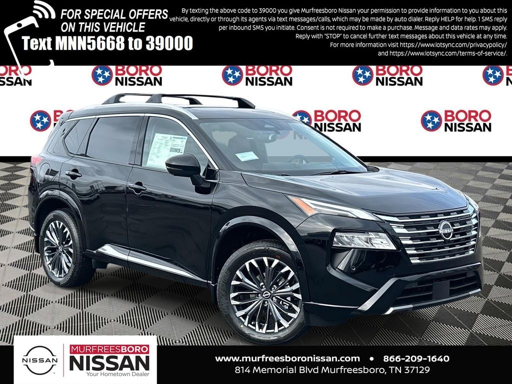 Super Black 2026 Nissan Rogue Platinum AWD CVT with Xtronic 1.5L DOHC APPLE ANDRIOD CAR PLAY, REAR BACKUP CAMERA, BLUETOOTH, AWD, 10 Speakers, 4-Wheel Disc Brakes, ABS brakes, Air Conditioning, Alloy wheels, AM/FM radio: SiriusXM w/360L, Auto High-beam Headlights, Auto-dimming Rear-View mirror, Automatic temperature control, Black Splash Guards (set of 4), Bose Premium Audio System, Brake assist, Bumpers: body-color, Chrome Rear Bumper Protector, Delay-off headlights, Driver door bin, Driver vanity mirror, Dual front impact airbags, Dual front side impact airbags, Electronic Stability Control, Emergency communication system: NissanConnect Services, First Aid Kit, Floor Mats with 2-Piece Cargo Area Protector, Four wheel independent suspension, Front anti-roll bar, Front Bucket Seats, Front Center Armrest, Front dual zone A/C, Front reading lights, Fully automatic headlights, Garage door transmitter: myQ Connected Garage, Head-Up Display, Heads-Up Display, Heated door mirrors, Heated Front Bucket Seats, Heated front seats, Heated Rear Seats, Heated steering wheel, Illuminated entry, Knee airbag, Low tire pressure warning, Memory seat, Motion-Activated Power Liftgate, Navigation system: Google Maps, Occupant sensing airbag, Outside temperature display, Overhead airbag, Overhead console, Panic alarm, Passenger door bin, Passenger vanity mirror, Platinum Premium Package, Power door mirrors, Power driver seat, Power Liftgate, Power moonroof, Power passenger seat, Power steering, Power windows, Quilted Semi-Aniline Leather-Appointed Seat Trim, Radio data system, Radio: AM/FM NissanConnect with Navigation, Rear anti-roll bar, Rear reading lights, Rear seat center armrest, Rear side impact airbag, Rear window defroster, Rear window wiper, Remote keyless entry, Roof Rail Cross Bars, Security system, Speed control, Speed-sensing steering, Speed-Sensitive Wipers, Split folding rear seat, Spoiler, Steering wheel mounted audio controls, Tachometer, Telescoping steering wheel, Tilt steering wheel, Traction control, Tri-Zone Automatic Temperature Control, Trip computer, Turn signal indicator mirrors, Variably intermittent wipers, Wheels: 19" Unique Dark Painted Aluminum Alloy, Wireless Apple CarPlay/Wireless Android Auto, SUNROOF, LEATHER, NAVIGATION, ALLOY WHEELS, AWD.