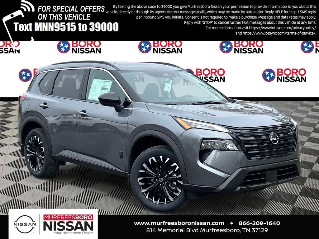 Gun Metallic 2026 Nissan Rogue Dark Armor FWD CVT with Xtronic 1.5L DOHC APPLE ANDRIOD CAR PLAY, REAR BACKUP CAMERA, BLUETOOTH, 4-Wheel Disc Brakes, 6 Speakers, ABS brakes, Air Conditioning, Alloy wheels, AM/FM radio, Apple CarPlay/Android Auto, Auto High-beam Headlights, Automatic temperature control, Black Splash Guards (set of 4), Brake assist, Bumpers: body-color, Delay-off headlights, Driver door bin, Driver vanity mirror, Dual front impact airbags, Dual front side impact airbags, Electronic Stability Control, Emergency communication system: NissanConnect Services, Exterior Parking Camera Rear, First Aid Kit, Floor Mats with 1-Piece Cargo Area Protector, Four wheel independent suspension, Frameless Rearview Mirror with Universal Remote, Front anti-roll bar, Front Bucket Seats, Front Center Armrest, Front dual zone A/C, Front reading lights, Fully automatic headlights, Heated door mirrors, Heated Front Bucket Seats, Heated front seats, Heated steering wheel, Illuminated entry, Illuminated Kick Plates, Knee airbag, Low tire pressure warning, Occupant sensing airbag, Outside temperature display, Overhead airbag, Overhead console, Panic alarm, Passenger door bin, Passenger vanity mirror, Power door mirrors, Power driver seat, Power Liftgate, Power moonroof, Power steering, Power windows, Prima-Tex Leatherette Seat Trim, Radio data system, Radio: AM/FM NissanConnect, Rear anti-roll bar, Rear Parking Sensors, Rear reading lights, Rear seat center armrest, Rear side impact airbag, Rear window defroster, Rear window wiper, Remote keyless entry, Speed control, Speed-sensing steering, Speed-Sensitive Wipers, Split folding rear seat, Spoiler, Steering wheel mounted audio controls, Tachometer, Telescoping steering wheel, Tilt steering wheel, Traction control, Trip computer, Variably intermittent wipers, Wheels: 19" Black Painted and Machine Finished Alloy, NAVIGATION, ALLOY WHEELS.