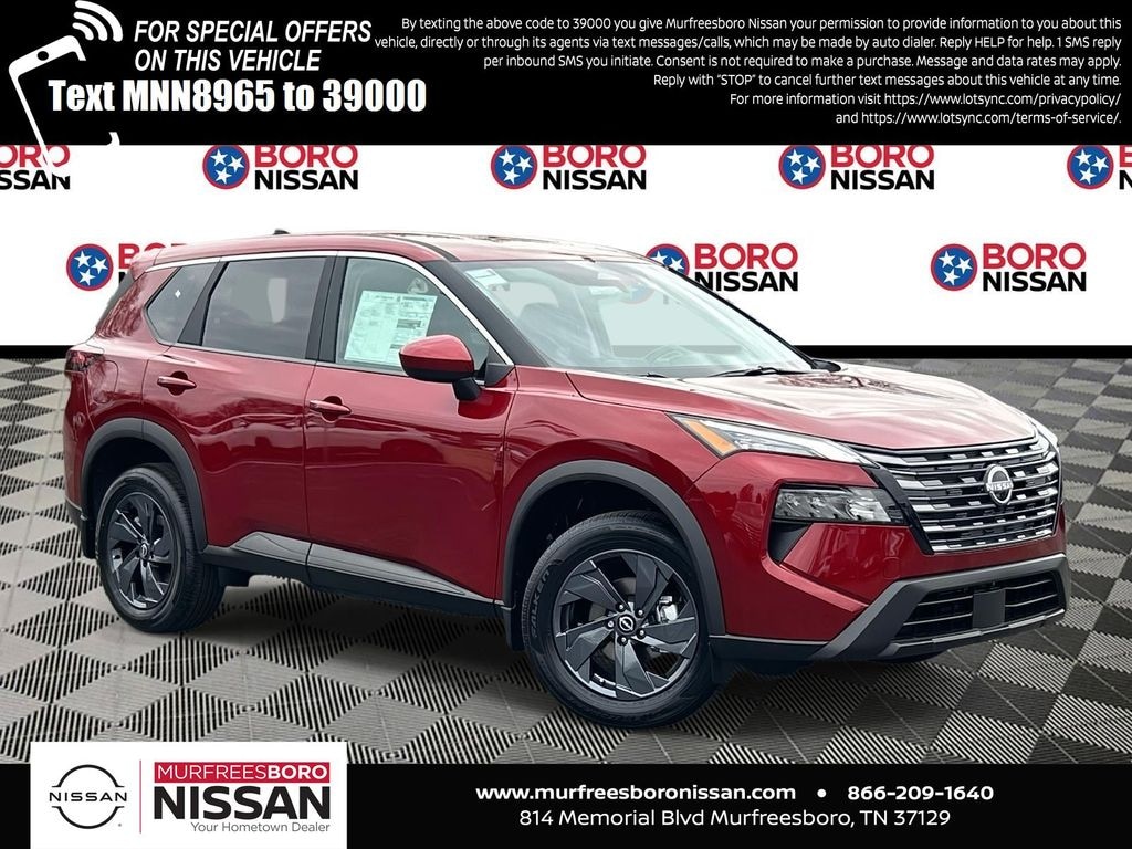 Scarlet Ember Tintcoat 2026 Nissan Rogue SV FWD CVT with Xtronic 1.5L DOHC APPLE ANDRIOD CAR PLAY, REAR BACKUP CAMERA, BLUETOOTH, 4-Wheel Disc Brakes, 6 Speakers, ABS brakes, Air Conditioning, Alloy wheels, AM/FM radio: Sirius, Apple CarPlay/Android Auto, Auto High-beam Headlights, Automatic temperature control, Black Splash Guards (Set of 4) (B92), Brake assist, Bumpers: body-color, Chrome Rear Bumper Protector, Delay-off headlights, Driver door bin, Driver vanity mirror, Dual front impact airbags, Dual front side impact airbags, Electronic Stability Control, Emergency communication system: NissanConnect Services, First Aid Kit, Floor Mats w/1-Piece Cargo Area Protector, Four wheel independent suspension, Front anti-roll bar, Front Bucket Seats, Front Center Armrest, Front dual zone A/C, Front reading lights, Fully automatic headlights, Heated door mirrors, Illuminated entry, Knee airbag, Low tire pressure warning, Occupant sensing airbag, Outside temperature display, Overhead airbag, Overhead console, Panic alarm, Passenger door bin, Passenger vanity mirror, Power door mirrors, Power driver seat, Power Liftgate, Power steering, Power windows, Premium Paint, Radio data system, Radio: AM/FM NissanConnect, Rear anti-roll bar, Rear seat center armrest, Rear side impact airbag, Rear window defroster, Rear window wiper, Remote keyless entry, Speed control, Speed-sensing steering, Speed-Sensitive Wipers, Split folding rear seat, Spoiler, Steering wheel mounted audio controls, Tachometer, Telescoping steering wheel, Tilt steering wheel, Traction control, Trip computer, Variably intermittent wipers, NAVIGATION, ALLOY WHEELS.