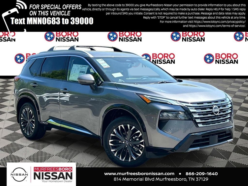 Gun Metallic 2026 Nissan Rogue Platinum AWD CVT with Xtronic 1.5L DOHC APPLE ANDRIOD CAR PLAY, REAR BACKUP CAMERA, BLUETOOTH, AWD, 10 Speakers, 4-Wheel Disc Brakes, ABS brakes, Air Conditioning, Alloy wheels, AM/FM radio: SiriusXM w/360L, Auto High-beam Headlights, Auto-dimming Rear-View mirror, Automatic temperature control, Black Splash Guards (set of 4), Bose Premium Audio System, Brake assist, Bumpers: body-color, Chrome Rear Bumper Protector, Delay-off headlights, Driver door bin, Driver vanity mirror, Dual front impact airbags, Dual front side impact airbags, Electronic Stability Control, Emergency communication system: NissanConnect Services, First Aid Kit, Floor Mats with 2-Piece Cargo Area Protector, Four wheel independent suspension, Front anti-roll bar, Front Bucket Seats, Front Center Armrest, Front dual zone A/C, Front reading lights, Fully automatic headlights, Garage door transmitter: myQ Connected Garage, Heated door mirrors, Heated Front Bucket Seats, Heated front seats, Heated steering wheel, Illuminated entry, Illuminated Kick Plates, Knee airbag, Low tire pressure warning, Memory seat, Navigation system: Google Maps, Occupant sensing airbag, Outside temperature display, Overhead airbag, Overhead console, Panic alarm, Passenger door bin, Passenger vanity mirror, Power door mirrors, Power driver seat, Power Liftgate, Power moonroof, Power passenger seat, Power steering, Power windows, Quilted Semi-Aniline Leather-Appointed Seat Trim, Radio data system, Radio: AM/FM NissanConnect with Navigation, Rear anti-roll bar, Rear reading lights, Rear seat center armrest, Rear side impact airbag, Rear window defroster, Rear window wiper, Remote keyless entry, Roof Rail Cross Bars, Security system, Speed control, Speed-sensing steering, Speed-Sensitive Wipers, Split folding rear seat, Spoiler, Steering wheel mounted audio controls, Tachometer, Telescoping steering wheel, Tilt steering wheel, Traction control, Trip computer, Turn signal indicator mirrors, USB Charging Cable Set, Variably intermittent wipers, Wheels: 19" Unique Dark Painted Aluminum Alloy, Wireless Apple CarPlay/Wireless Android Auto, SUNROOF, LEATHER, NAVIGATION, ALLOY WHEELS, AWD.