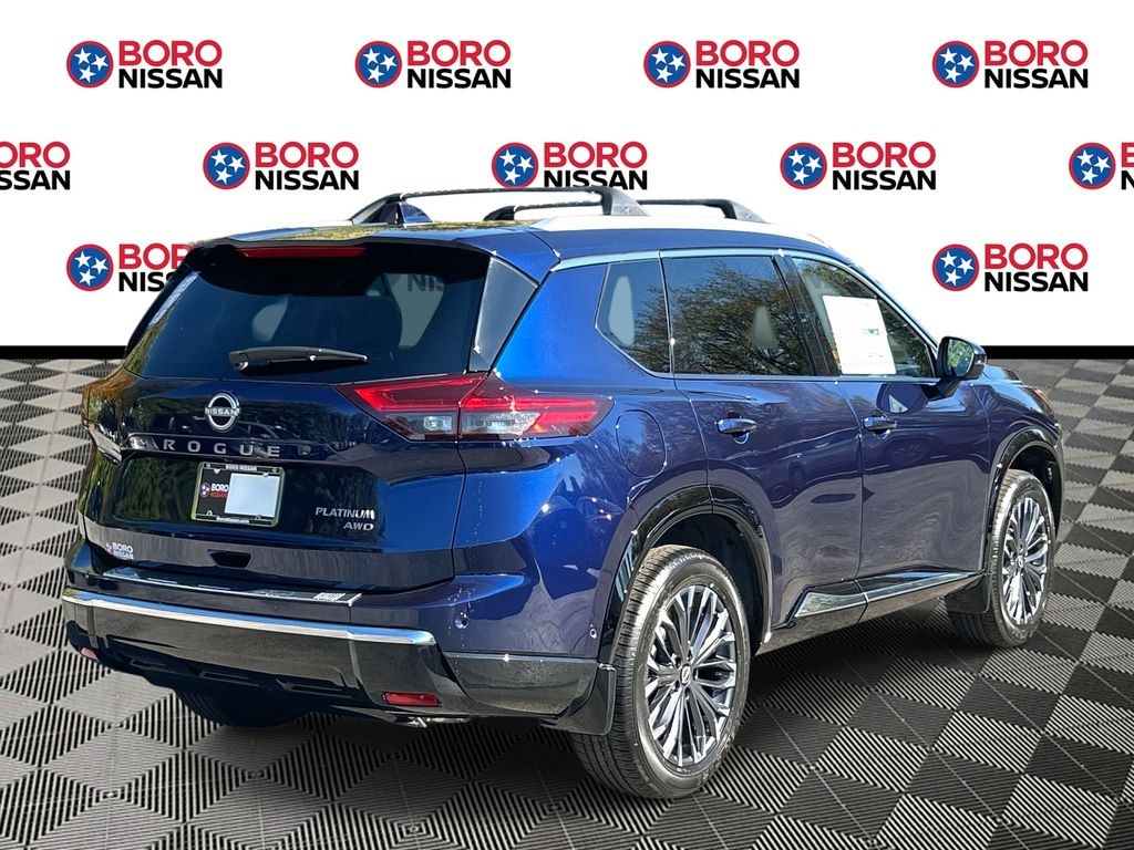 Deep Ocean Blue Pearl 2026 Nissan Rogue Platinum AWD CVT with Xtronic 1.5L DOHC APPLE ANDRIOD CAR PLAY, REAR BACKUP CAMERA, BLUETOOTH, AWD, 10 Speakers, 4-Wheel Disc Brakes, ABS brakes, Air Conditioning, Alloy wheels, AM/FM radio: SiriusXM w/360L, Auto High-beam Headlights, Auto-dimming Rear-View mirror, Automatic temperature control, Bose Premium Audio System, Brake assist, Bumpers: body-color, Chrome Rear Bumper Protector, Delay-off headlights, Driver door bin, Driver vanity mirror, Dual front impact airbags, Dual front side impact airbags, Electronic Stability Control, Emergency communication system: NissanConnect Services, First Aid Kit, Four wheel independent suspension, Front anti-roll bar, Front Bucket Seats, Front Center Armrest, Front dual zone A/C, Front reading lights, Fully automatic headlights, Garage door transmitter: myQ Connected Garage, Head-Up Display, Heads-Up Display, Heated door mirrors, Heated Front Bucket Seats, Heated front seats, Heated Rear Seats, Heated steering wheel, Illuminated entry, Knee airbag, Low tire pressure warning, Memory seat, Motion-Activated Power Liftgate, Navigation system: Google Maps, Occupant sensing airbag, Outside temperature display, Overhead airbag, Overhead console, Panic alarm, Passenger door bin, Passenger vanity mirror, Platinum Premium Package, Power door mirrors, Power driver seat, Power Liftgate, Power moonroof, Power passenger seat, Power steering, Power windows, Quilted Semi-Aniline Leather-Appointed Seat Trim, Radio data system, Rear anti-roll bar, Rear reading lights, Rear seat center armrest, Rear side impact airbag, Rear window defroster, Rear window wiper, Remote keyless entry, Roof Rail Cross Bars, Security system, Speed control, Speed-sensing steering, Speed-Sensitive Wipers, Split folding rear seat, Spoiler, Steering wheel mounted audio controls, Tachometer, Telescoping steering wheel, Tilt steering wheel, Traction control, Tri-Zone Automatic Temperature Control, Trip computer, Turn signal indicator mirrors, USB Charging Cable Set, Variably intermittent wipers, Wheels: 19" Unique Dark Painted Aluminum Alloy, Wireless Apple CarPlay/Wireless Android Auto, SUNROOF, LEATHER, NAVIGATION, ALLOY WHEELS, AWD.