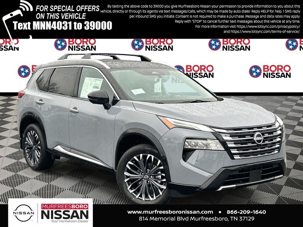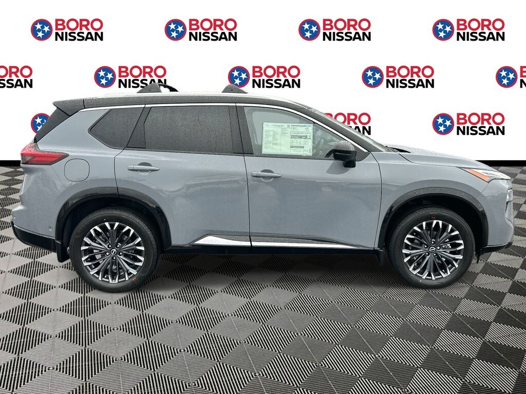 Boulder Gray/Super Black 2026 Nissan Rogue Platinum AWD CVT with Xtronic 1.5L DOHC APPLE ANDRIOD CAR PLAY, REAR BACKUP CAMERA, BLUETOOTH, AWD, 10 Speakers, 4-Wheel Disc Brakes, ABS brakes, Air Conditioning, Alloy wheels, AM/FM radio: SiriusXM w/360L, Auto High-beam Headlights, Auto-dimming Rear-View mirror, Automatic temperature control, Black Splash Guards (set of 4), Bose Premium Audio System, Brake assist, Bumpers: body-color, Chrome Rear Bumper Protector, Delay-off headlights, Driver door bin, Driver vanity mirror, Dual front impact airbags, Dual front side impact airbags, Electronic Stability Control, Emergency communication system: NissanConnect Services, First Aid Kit, Floor Mats with 2-Piece Cargo Area Protector, Four wheel independent suspension, Front anti-roll bar, Front Bucket Seats, Front Center Armrest, Front dual zone A/C, Front reading lights, Fully automatic headlights, Garage door transmitter: myQ Connected Garage, Head-Up Display, Heads-Up Display, Heated door mirrors, Heated Front Bucket Seats, Heated front seats, Heated Rear Seats, Heated steering wheel, Illuminated entry, Knee airbag, Low tire pressure warning, Memory seat, Motion-Activated Power Liftgate, Navigation system: Google Maps, Occupant sensing airbag, Outside temperature display, Overhead airbag, Overhead console, Panic alarm, Passenger door bin, Passenger vanity mirror, Platinum Premium Package, Power door mirrors, Power driver seat, Power Liftgate, Power moonroof, Power passenger seat, Power steering, Power windows, Premium Paint with Two-Tone, Quilted Semi-Aniline Leather-Appointed Seat Trim, Radio data system, Radio: AM/FM NissanConnect with Navigation, Rear anti-roll bar, Rear reading lights, Rear seat center armrest, Rear side impact airbag, Rear window defroster, Rear window wiper, Remote keyless entry, Roof Rail Cross Bars, Security system, Speed control, Speed-sensing steering, Speed-Sensitive Wipers, Split folding rear seat, Spoiler, Steering wheel mounted audio controls, Tachometer, Telescoping steering wheel, Tilt steering wheel, Traction control, Tri-Zone Automatic Temperature Control, Trip computer, Turn signal indicator mirrors, Variably intermittent wipers, Wheels: 19" Unique Dark Painted Aluminum Alloy, Wireless Apple CarPlay/Wireless Android Auto, SUNROOF, LEATHER, NAVIGATION, ALLOY WHEELS, AWD.
