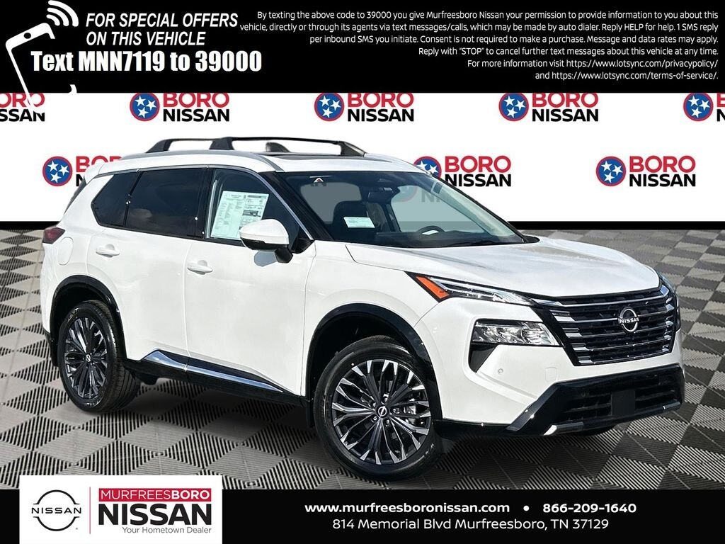 Everest White Pearl Tricoat 2026 Nissan Rogue Platinum AWD CVT with Xtronic 1.5L DOHC APPLE ANDRIOD CAR PLAY, REAR BACKUP CAMERA, BLUETOOTH, AWD, 10 Speakers, 4-Wheel Disc Brakes, ABS brakes, Air Conditioning, Alloy wheels, AM/FM radio: SiriusXM w/360L, Auto High-beam Headlights, Auto-dimming Rear-View mirror, Automatic temperature control, Black Splash Guards (Set of 4), Bose Premium Audio System, Brake assist, Bumpers: body-color, Chrome Rear Bumper Protector, Delay-off headlights, Driver door bin, Driver vanity mirror, Dual front impact airbags, Dual front side impact airbags, Electronic Stability Control, Emergency communication system: NissanConnect Services, First Aid Kit, Floor Mats w/2-Piece Cargo Area Protector, Four wheel independent suspension, Front anti-roll bar, Front Bucket Seats, Front Center Armrest, Front dual zone A/C, Front reading lights, Fully automatic headlights, Garage door transmitter: myQ Connected Garage, Head-Up Display, Heads-Up Display, Heated door mirrors, Heated Front Bucket Seats, Heated front seats, Heated Rear Seats, Heated steering wheel, Illuminated entry, Knee airbag, Low tire pressure warning, Memory seat, Motion-Activated Power Liftgate, Navigation system: Google Maps, Occupant sensing airbag, Outside temperature display, Overhead airbag, Overhead console, Panic alarm, Passenger door bin, Passenger vanity mirror, Platinum Premium Package, Power door mirrors, Power driver seat, Power Liftgate, Power moonroof, Power passenger seat, Power steering, Power windows, Premium Paint, Quilted Semi-Aniline Leather-Appointed Seat Trim, Radio data system, Radio: AM/FM NissanConnect w/Navigation, Rear anti-roll bar, Rear reading lights, Rear seat center armrest, Rear side impact airbag, Rear window defroster, Rear window wiper, Remote keyless entry, Retractable Cargo Cover, Roof Rail Cross Bars, Security system, Speed control, Speed-sensing steering, Speed-Sensitive Wipers, Split folding rear seat, Spoiler, Steering wheel mounted audio controls, Tachometer, Telescoping steering wheel, Tilt steering wheel, Traction control, Tri-Zone Automatic Temperature Control, Trip computer, Turn signal indicator mirrors, Variably intermittent wipers, Wheels: 19" Unique Dark Painted Aluminum Alloy, Wireless Apple CarPlay/Wireless Android Auto, SUNROOF, LEATHER, NAVIGATION, ALLOY WHEELS, AWD.