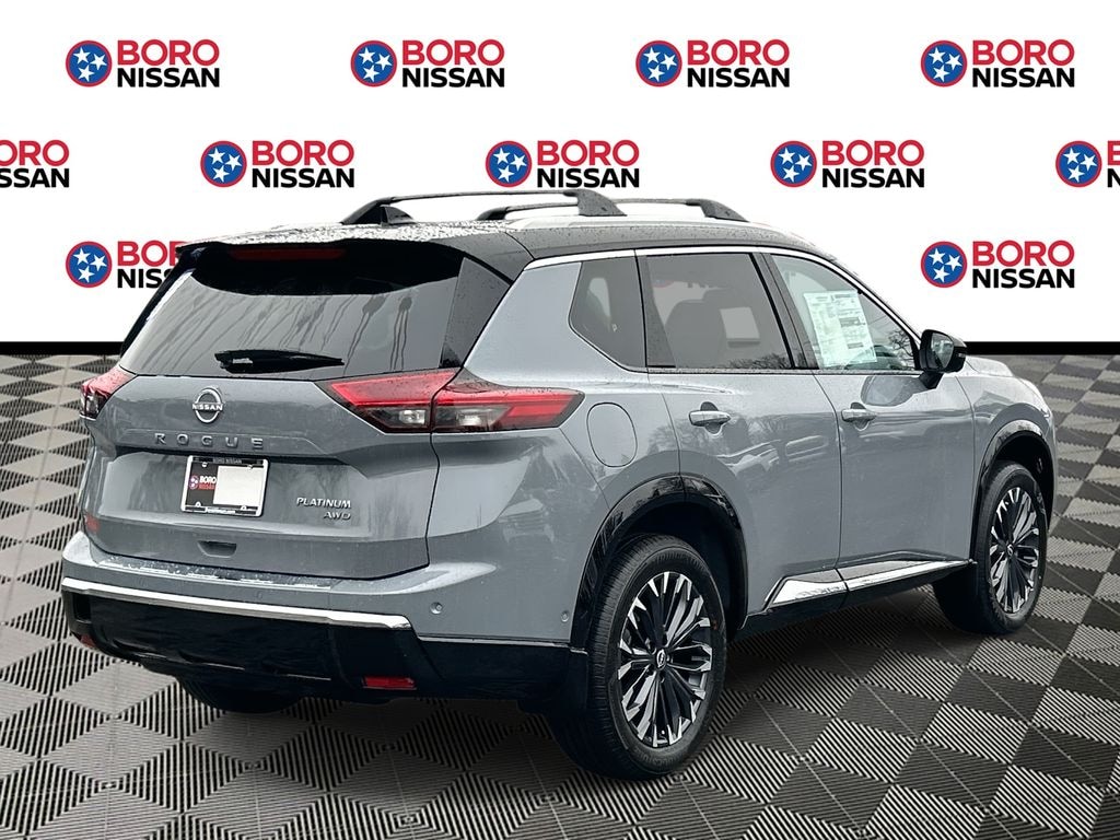 Boulder Gray Pearl/Super Black 2026 Nissan Rogue Platinum AWD CVT with Xtronic 1.5L DOHC APPLE ANDRIOD CAR PLAY, REAR BACKUP CAMERA, BLUETOOTH, AWD, 10 Speakers, 4-Wheel Disc Brakes, ABS brakes, Air Conditioning, Alloy wheels, AM/FM radio: SiriusXM w/360L, Auto High-beam Headlights, Auto-dimming Rear-View mirror, Automatic temperature control, Black Splash Guards (Set of 4), Bose Premium Audio System, Brake assist, Bumpers: body-color, Chrome Rear Bumper Protector, Delay-off headlights, Driver door bin, Driver vanity mirror, Dual front impact airbags, Dual front side impact airbags, Electronic Stability Control, Emergency communication system: NissanConnect Services, First Aid Kit, Floor Mats w/2-Piece Cargo Area Protector, Four wheel independent suspension, Front anti-roll bar, Front Bucket Seats, Front Center Armrest, Front dual zone A/C, Front reading lights, Fully automatic headlights, Garage door transmitter: myQ Connected Garage, Head-Up Display, Heads-Up Display, Heated door mirrors, Heated Front Bucket Seats, Heated front seats, Heated Rear Seats, Heated steering wheel, Illuminated entry, Knee airbag, Low tire pressure warning, Memory seat, Motion-Activated Power Liftgate, Navigation system: Google Maps, Occupant sensing airbag, Outside temperature display, Overhead airbag, Overhead console, Panic alarm, Passenger door bin, Passenger vanity mirror, Platinum Premium Package, Power door mirrors, Power driver seat, Power Liftgate, Power moonroof, Power passenger seat, Power steering, Power windows, Premium Paint w/Two-Tone, Quilted Semi-Aniline Leather-Appointed Seat Trim, Radio data system, Radio: AM/FM NissanConnect w/Navigation, Rear anti-roll bar, Rear reading lights, Rear seat center armrest, Rear side impact airbag, Rear window defroster, Rear window wiper, Remote keyless entry, Roof Rail Cross Bars, Security system, Speed control, Speed-sensing steering, Speed-Sensitive Wipers, Split folding rear seat, Spoiler, Steering wheel mounted audio controls, Tachometer, Telescoping steering wheel, Tilt steering wheel, Traction control, Tri-Zone Automatic Temperature Control, Trip computer, Turn signal indicator mirrors, Variably intermittent wipers, Wheels: 19" Unique Dark Painted Aluminum Alloy, Wireless Apple CarPlay/Wireless Android Auto, SUNROOF, LEATHER, NAVIGATION, ALLOY WHEELS, AWD.