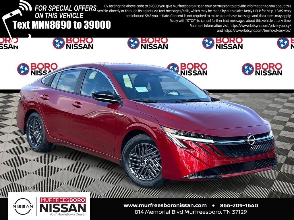 Scarlet Ember Tintcoat 2026 Nissan Sentra SV FWD CVT with Xtronic 2.0L I4 DOHC APPLE ANDRIOD CAR PLAY, REAR BACKUP CAMERA, BLUETOOTH, CVT with Xtronic, Charcoal Cloth, 16" Machined Alloy Wheels, 4 Speakers, 4-Wheel Disc Brakes, 6 Speakers, ABS brakes, Air Conditioning, Alloy wheels, AM/FM radio: Sirius, Ambient Lighting, Auto Diming Inside Mirror, Auto High-beam Headlights, Automatic temperature control, Body Colored Splash Guards (4-Piece), Brake assist, Bumpers: body-color, Delay-off headlights, Driver door bin, Driver vanity mirror, Dual front impact airbags, Dual front side impact airbags, Electronic Stability Control, Floor Mat Package, Four wheel independent suspension, Front anti-roll bar, Front Bucket Seats, Front Center Armrest, Front reading lights, Fully automatic headlights, Heated Exterior Mirrors, Heated Front Seats, Heated Steering Wheel, I-Key with Approach Unlock All Plus Walk Away Lock, Illuminated entry, Interior Door Scuff Protection, Knee airbag, Low tire pressure warning, Nissan USB Charging Cable Set, Occupant sensing airbag, Outside temperature display, Overhead airbag, Overhead console, Panic alarm, Passenger door bin, Passenger vanity mirror, Power door mirrors, Power steering, Power windows, Premium Cloth Seat Trim, Premium Paint, Radio data system, Radio: AM/FM with RDS/MP3, Rear anti-roll bar, Rear side impact airbag, Rear window defroster, Remote keyless entry, Security system, Soft Knee Pad, Speed control, Speed-sensing steering, Split folding rear seat, Steering wheel mounted audio controls, SV Convenience Package, Synthetic Leather Steering Wheel, Tachometer, Telescoping steering wheel, Tilt steering wheel, Traction control, Trip computer, Variably intermittent wipers, Visor DR/AS w/LED Light, Wireless Apple CarPlay/Wireless Android Auto, Wireless Charging For Personal Devices, NAVIGATION, ALLOY WHEELS, CVT with Xtronic, Charcoal Cloth.