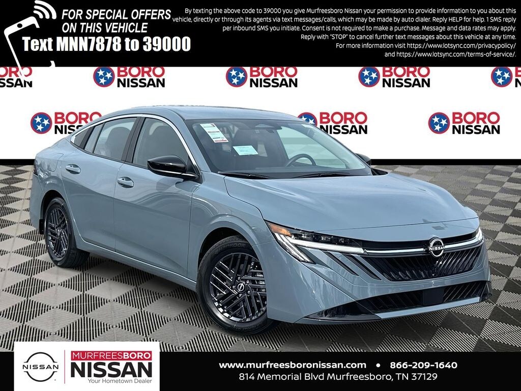 Atlantic Gray Metallic 2026 Nissan Sentra SV FWD CVT with Xtronic 2.0L I4 DOHC APPLE ANDRIOD CAR PLAY, REAR BACKUP CAMERA, CVT with Xtronic, Charcoal Cloth, 16" Machined Alloy Wheels, 4 Speakers, 4-Wheel Disc Brakes, 6 Speakers, ABS brakes, Air Conditioning, Alloy wheels, AM/FM radio: Sirius, Ambient Lighting, Auto Diming Inside Mirror, Auto High-beam Headlights, Automatic temperature control, Body Colored Splash Guards (4-Piece), Brake assist, Bumpers: body-color, Delay-off headlights, Driver door bin, Driver vanity mirror, Dual front impact airbags, Dual front side impact airbags, Electronic Stability Control, Floor Mat Package, Four wheel independent suspension, Front anti-roll bar, Front Bucket Seats, Front Center Armrest, Front reading lights, Fully automatic headlights, Heated Exterior Mirrors, Heated Front Seats, Heated Steering Wheel, I-Key with Approach Unlock All Plus Walk Away Lock, Illuminated entry, Interior Door Scuff Protection, Knee airbag, Low tire pressure warning, Occupant sensing airbag, Outside temperature display, Overhead airbag, Overhead console, Panic alarm, Passenger door bin, Passenger vanity mirror, Power door mirrors, Power steering, Power windows, Premium Cloth Seat Trim, Premium Paint, Radio data system, Radio: AM/FM with RDS/MP3, Rear anti-roll bar, Rear side impact airbag, Rear window defroster, Remote keyless entry, Security system, Soft Knee Pad, Speed control, Speed-sensing steering, Split folding rear seat, Steering wheel mounted audio controls, SV Convenience Package, Synthetic Leather Steering Wheel, Tachometer, Telescoping steering wheel, Tilt steering wheel, Traction control, Trip computer, Variably intermittent wipers, Visor DR/AS w/LED Light, Wireless Apple CarPlay/Wireless Android Auto, Wireless Charging For Personal Devices, NAVIGATION, ALLOY WHEELS, CVT with Xtronic, Charcoal Cloth.