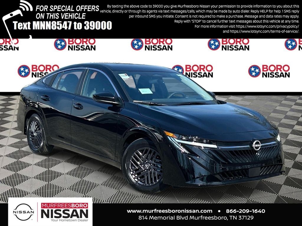 Super Black 2026 Nissan Sentra SV FWD CVT with Xtronic 2.0L I4 DOHC APPLE ANDRIOD CAR PLAY, REAR BACKUP CAMERA, BLUETOOTH, CVT with Xtronic, Charcoal Cloth, 16" Machined Alloy Wheels, 4 Speakers, 4-Wheel Disc Brakes, 6 Speakers, ABS brakes, Air Conditioning, Alloy wheels, AM/FM radio: Sirius, Ambient Lighting, Auto Diming Inside Mirror, Auto High-beam Headlights, Automatic temperature control, Body Colored Splash Guards (4-Piece), Brake assist, Bumpers: body-color, Delay-off headlights, Driver door bin, Driver vanity mirror, Dual front impact airbags, Dual front side impact airbags, Electronic Stability Control, Floor Mat Package, Four wheel independent suspension, Front anti-roll bar, Front Bucket Seats, Front Center Armrest, Front reading lights, Fully automatic headlights, Heated Exterior Mirrors, Heated Front Seats, Heated Steering Wheel, I-Key with Approach Unlock All Plus Walk Away Lock, Illuminated entry, Interior Door Scuff Protection, Knee airbag, Low tire pressure warning, Occupant sensing airbag, Outside temperature display, Overhead airbag, Overhead console, Panic alarm, Passenger door bin, Passenger vanity mirror, Power door mirrors, Power steering, Power windows, Premium Cloth Seat Trim, Radio data system, Radio: AM/FM with RDS/MP3, Rear anti-roll bar, Rear side impact airbag, Rear window defroster, Remote keyless entry, Security system, Soft Knee Pad, Speed control, Speed-sensing steering, Split folding rear seat, Steering wheel mounted audio controls, SV Convenience Package, Synthetic Leather Steering Wheel, Tachometer, Telescoping steering wheel, Tilt steering wheel, Traction control, Trip computer, Variably intermittent wipers, Visor DR/AS w/LED Light, Wireless Apple CarPlay/Wireless Android Auto, Wireless Charging For Personal Devices, NAVIGATION, ALLOY WHEELS, CVT with Xtronic, Charcoal Cloth.