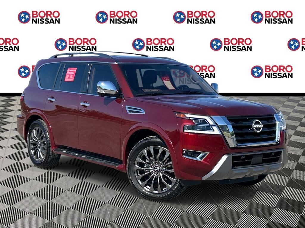 Certified. Coulis Red Pearl 2024 Nissan Armada Platinum RWD 5.6L V8 DOHC 32V LEV3-ULEV125 400hp 7-Speed Automatic